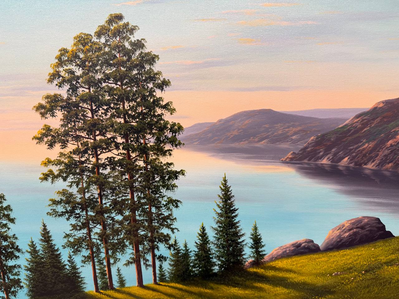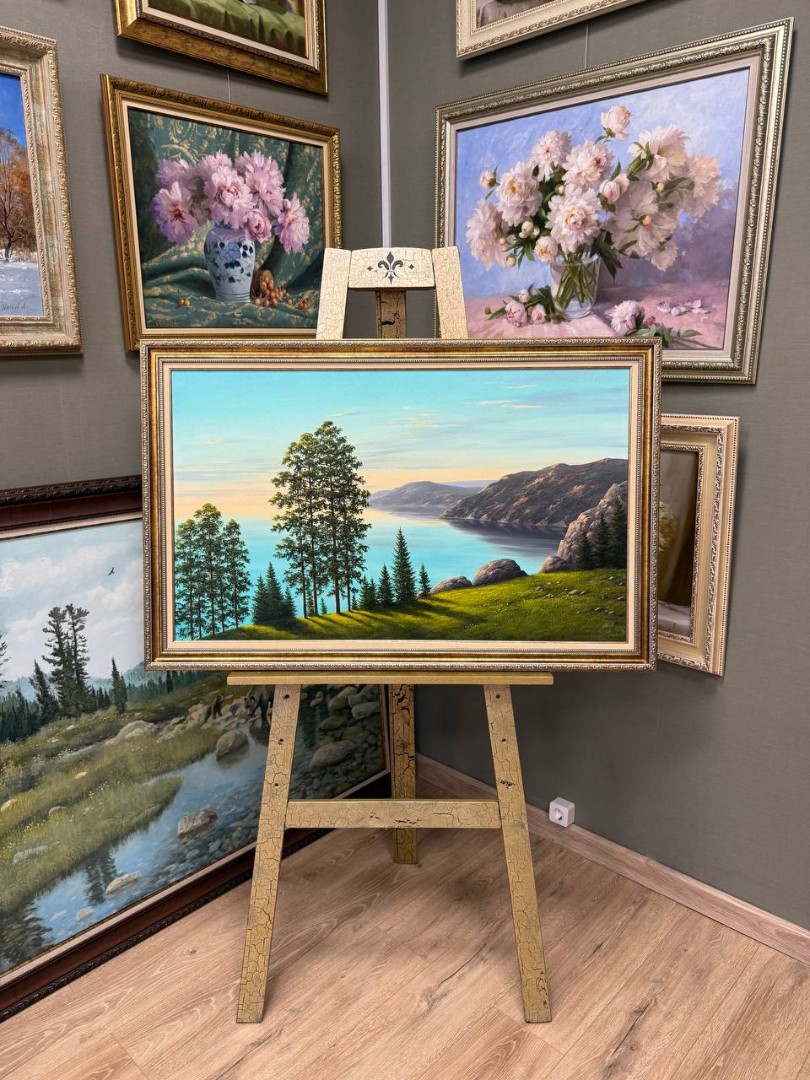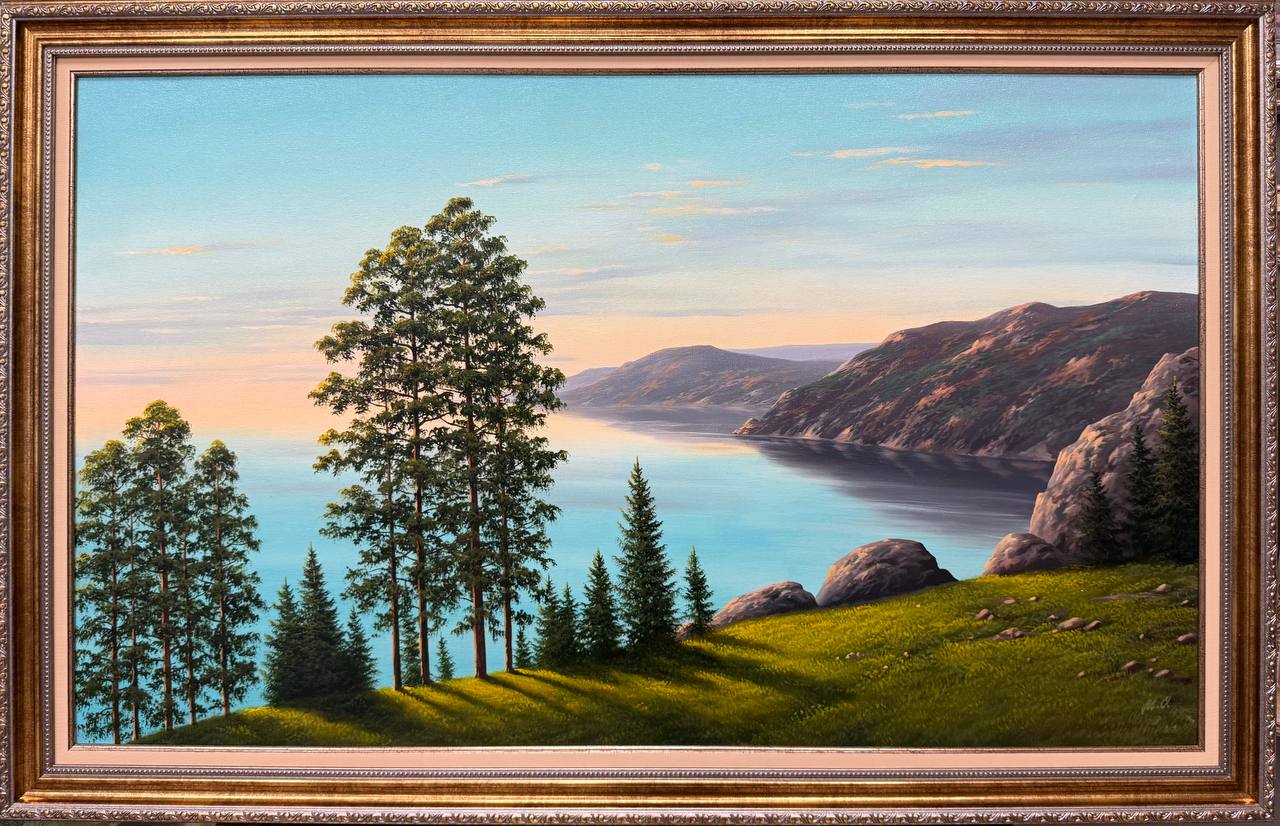 Картина написана маслом на холсте, летний пейзаж "Байкальское утро".