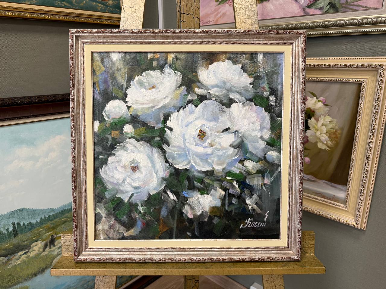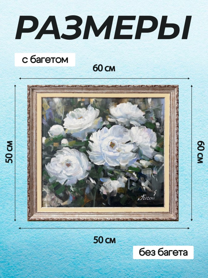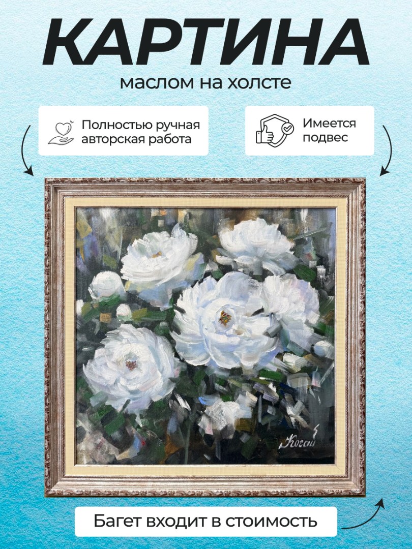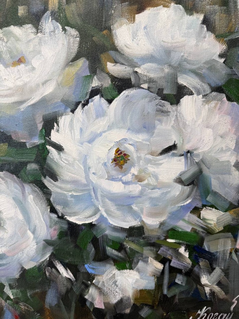 В нашем интернет-магазине картин, вы можете купить картину написанную маслом на холсте, под названием "Белые пионы" 3