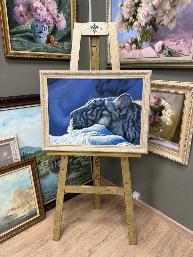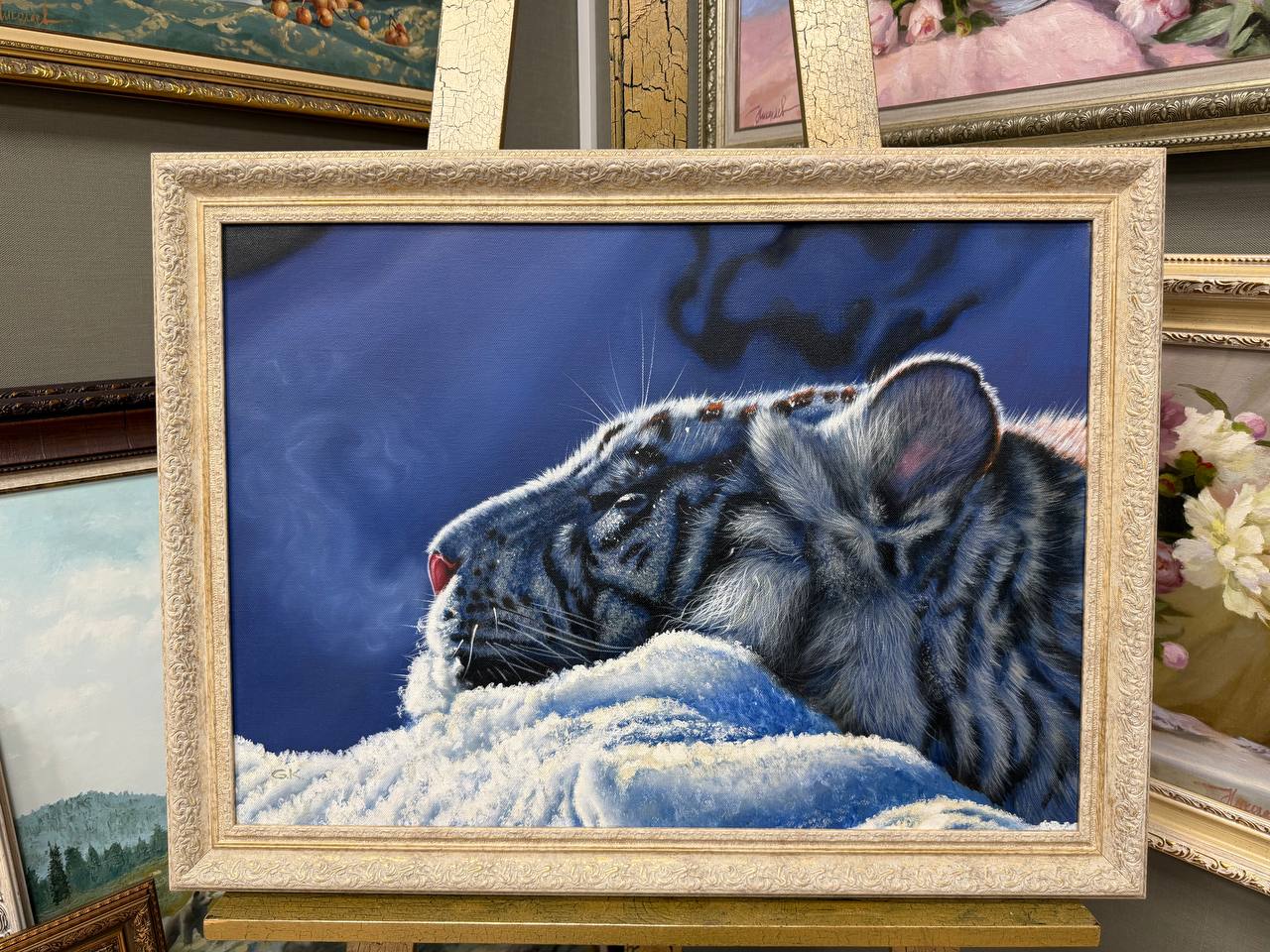 Картина написана маслом на холсте, анималистика "Белый тигр".