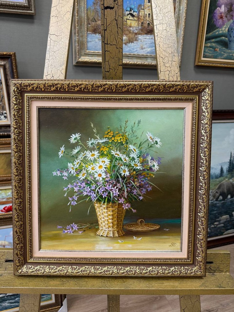 В нашем интернет-магазине картин, вы можете купить картину написанную маслом на холсте, под названием "Букет в корзине"