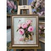 Картина написана маслом на холсте, цветы "Бутоны в стеклянной вазе".