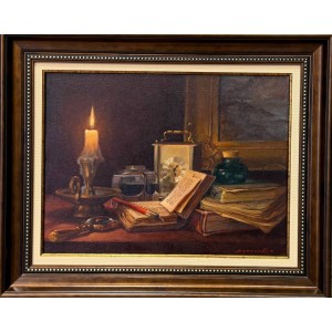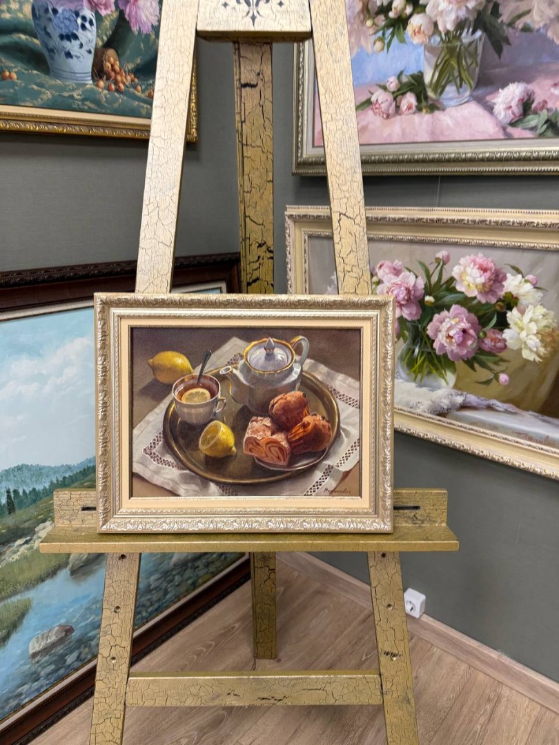 Картина написана маслом на холсте, натюрморт "Чай с лимоном".