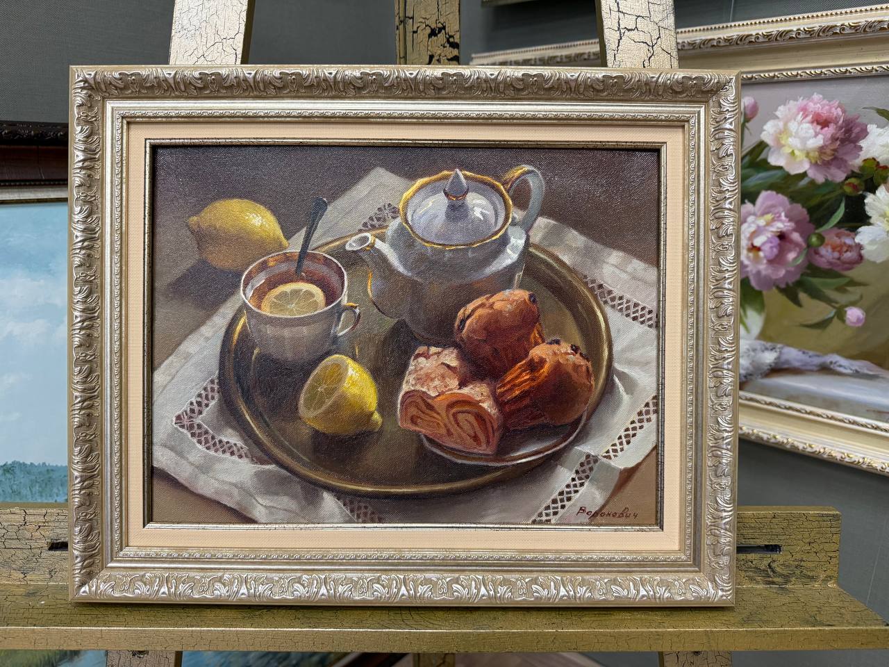 В нашем интернет-магазине картин, вы можете купить картину написанную маслом на холсте, под названием "Чай с лимоном"