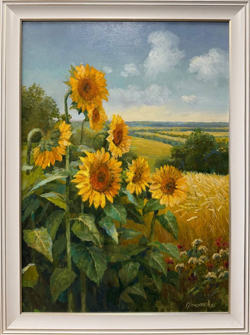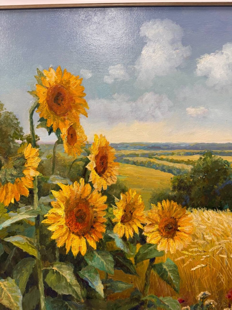 Картина написана маслом на холсте, цветы, летний пейзаж "Цветы солнца".