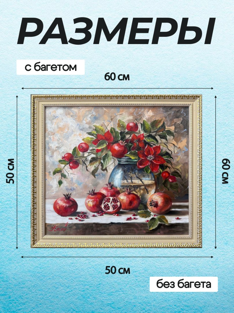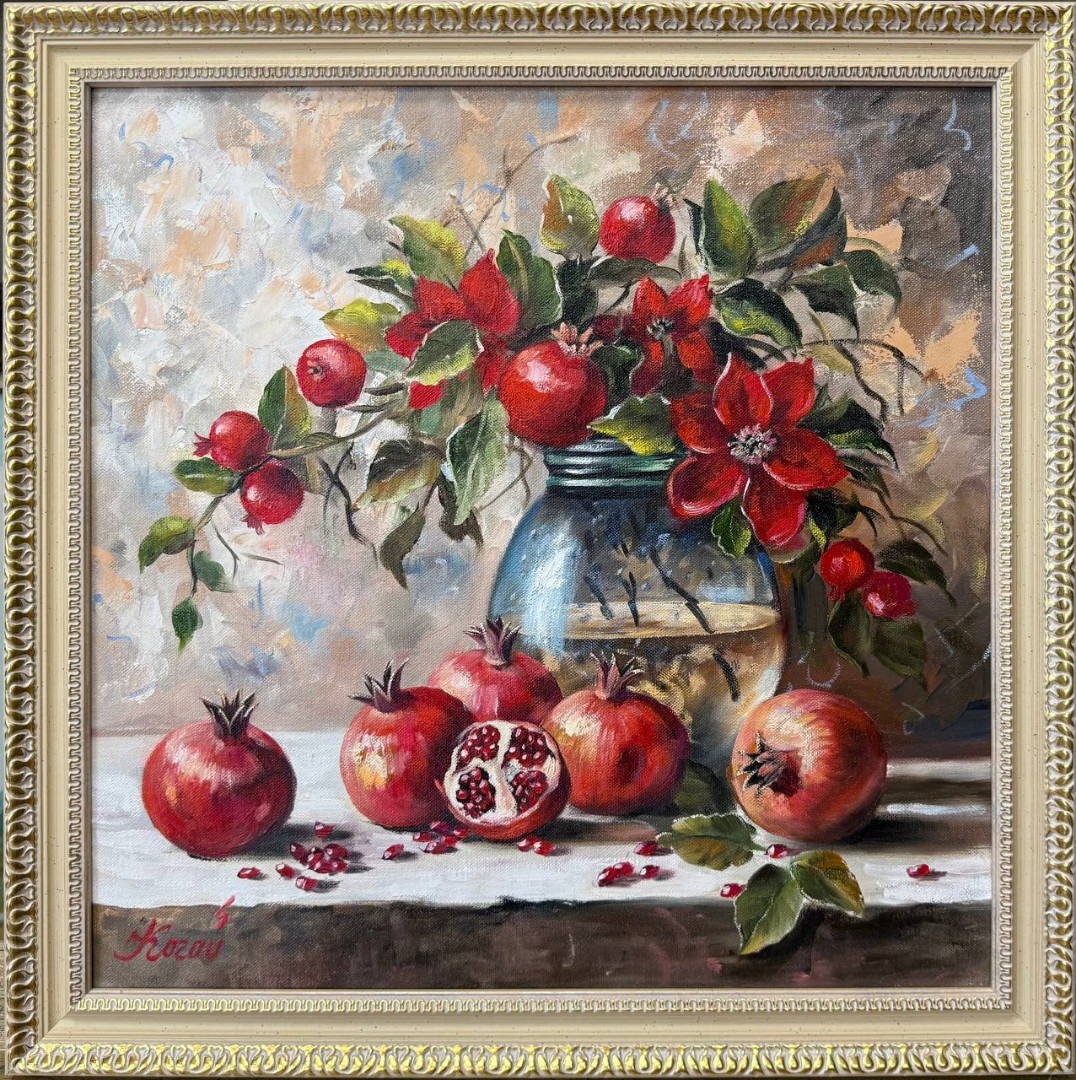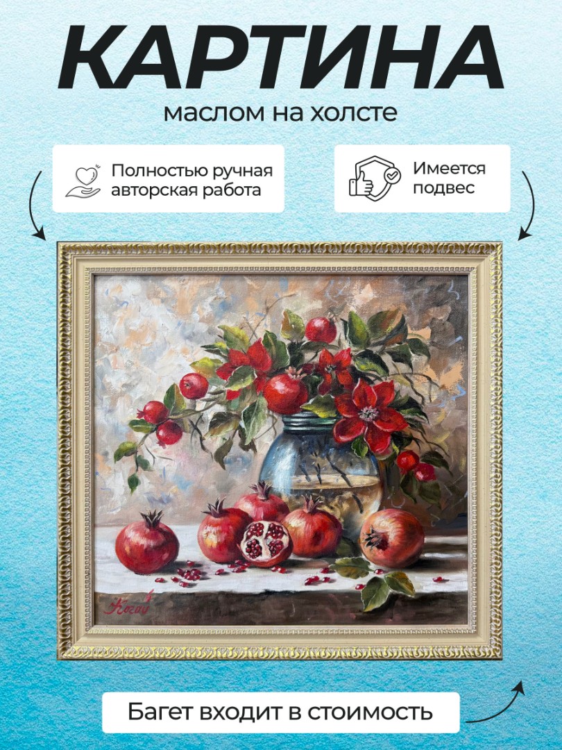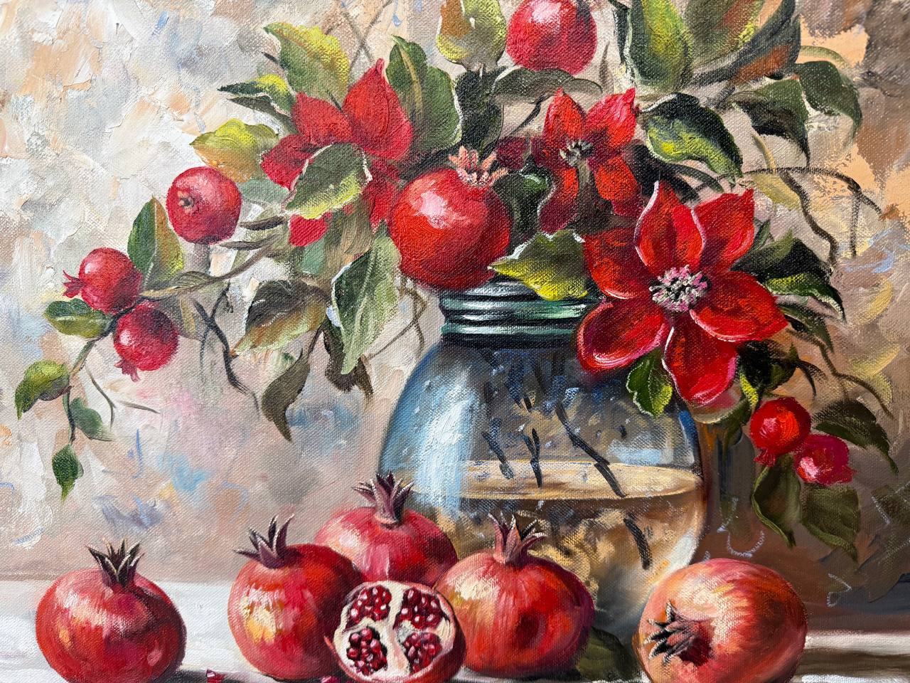Картина написана маслом на холсте, натюрморт "Гранаты" 1.