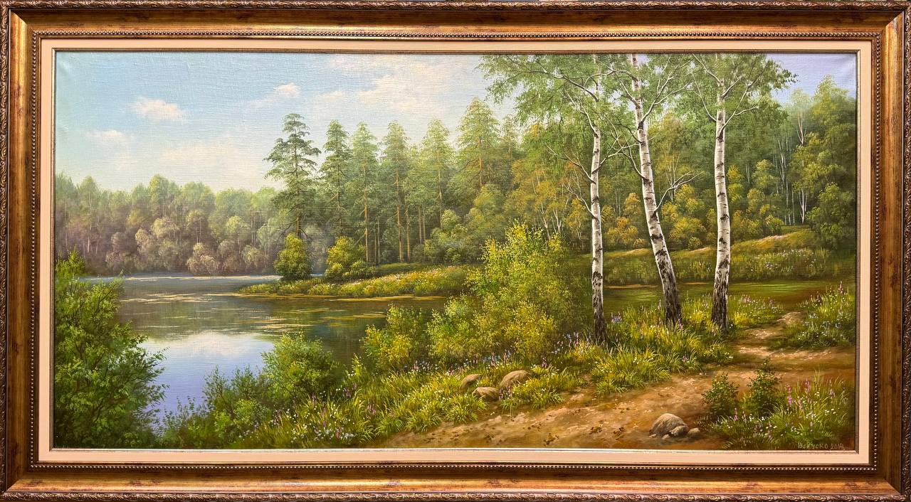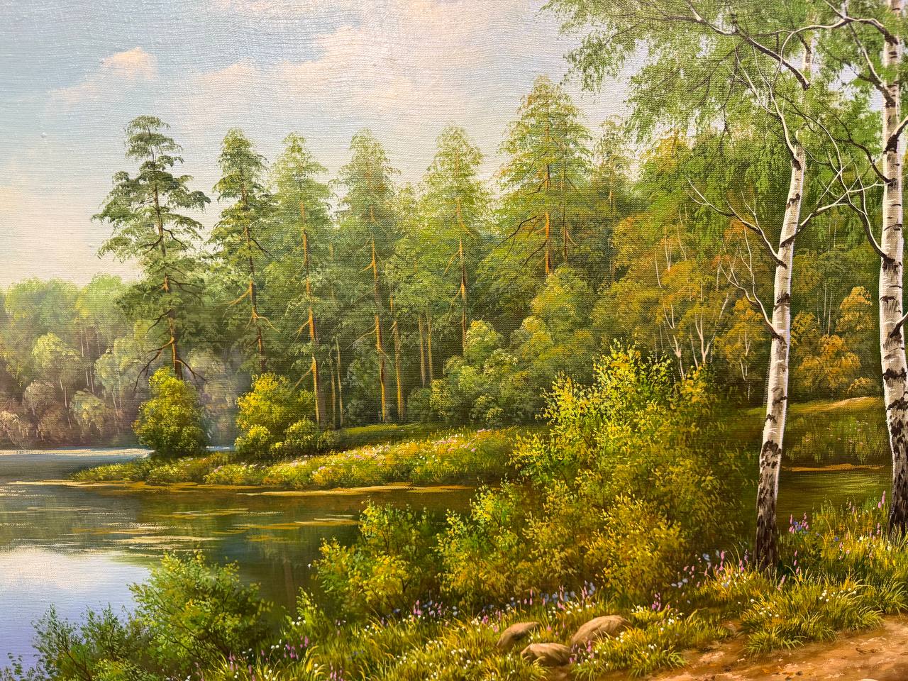 Картина написана маслом на холсте, летний пейзаж "Лесные дали".