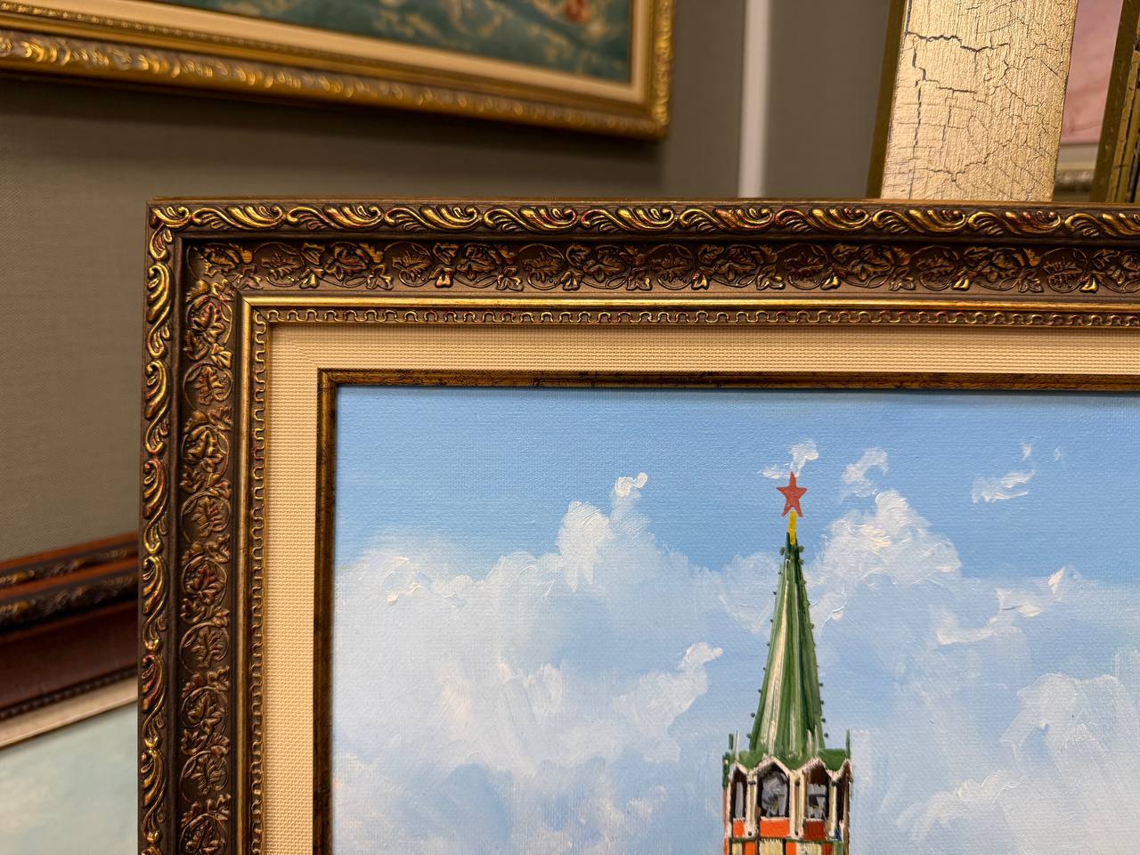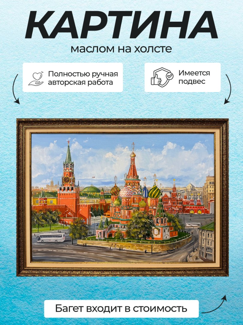 В нашем интернет-магазине картин, вы можете купить картину написанную маслом на холсте, под названием "Лето. Москва. Спасская башня Кремля"