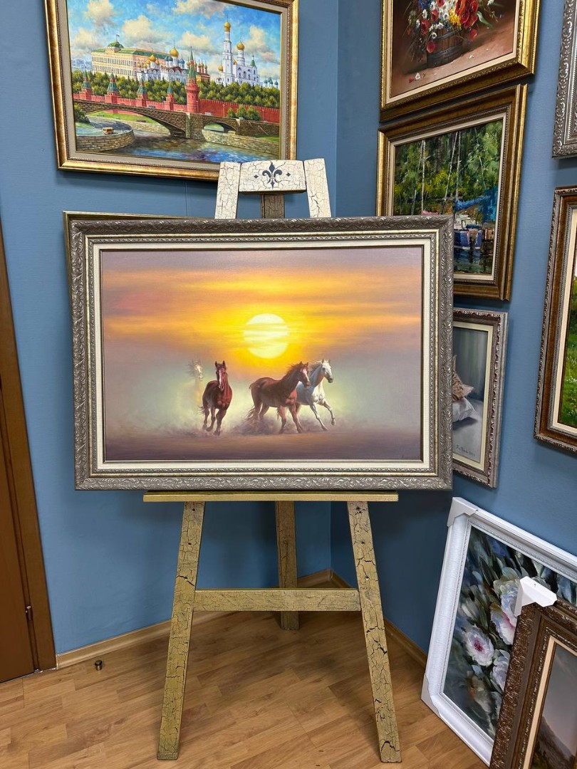 В нашем интернет-магазине картин, вы можете купить картину написанную маслом на холсте, под названием "Лошади в пустыне"