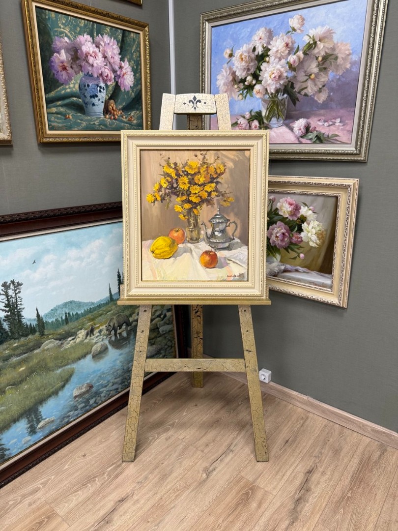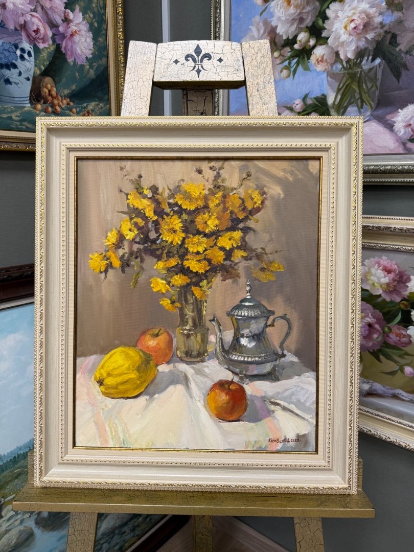 Картина написана маслом на холсте, натюрморт "Мамины дубки".