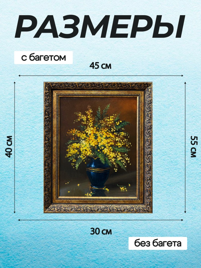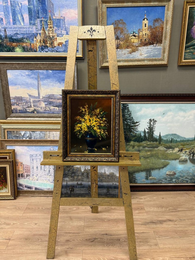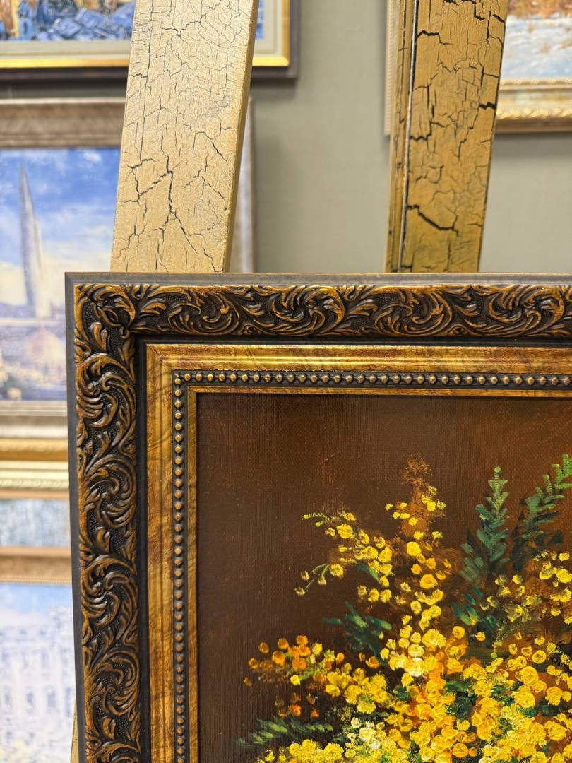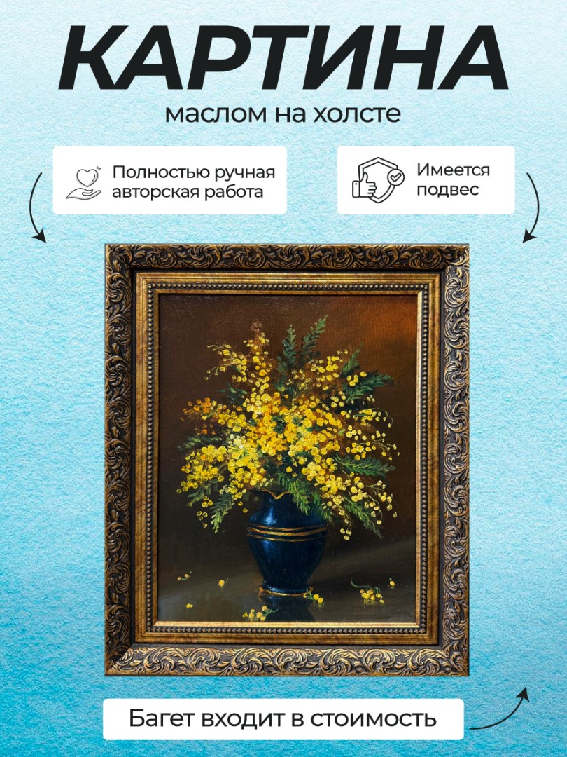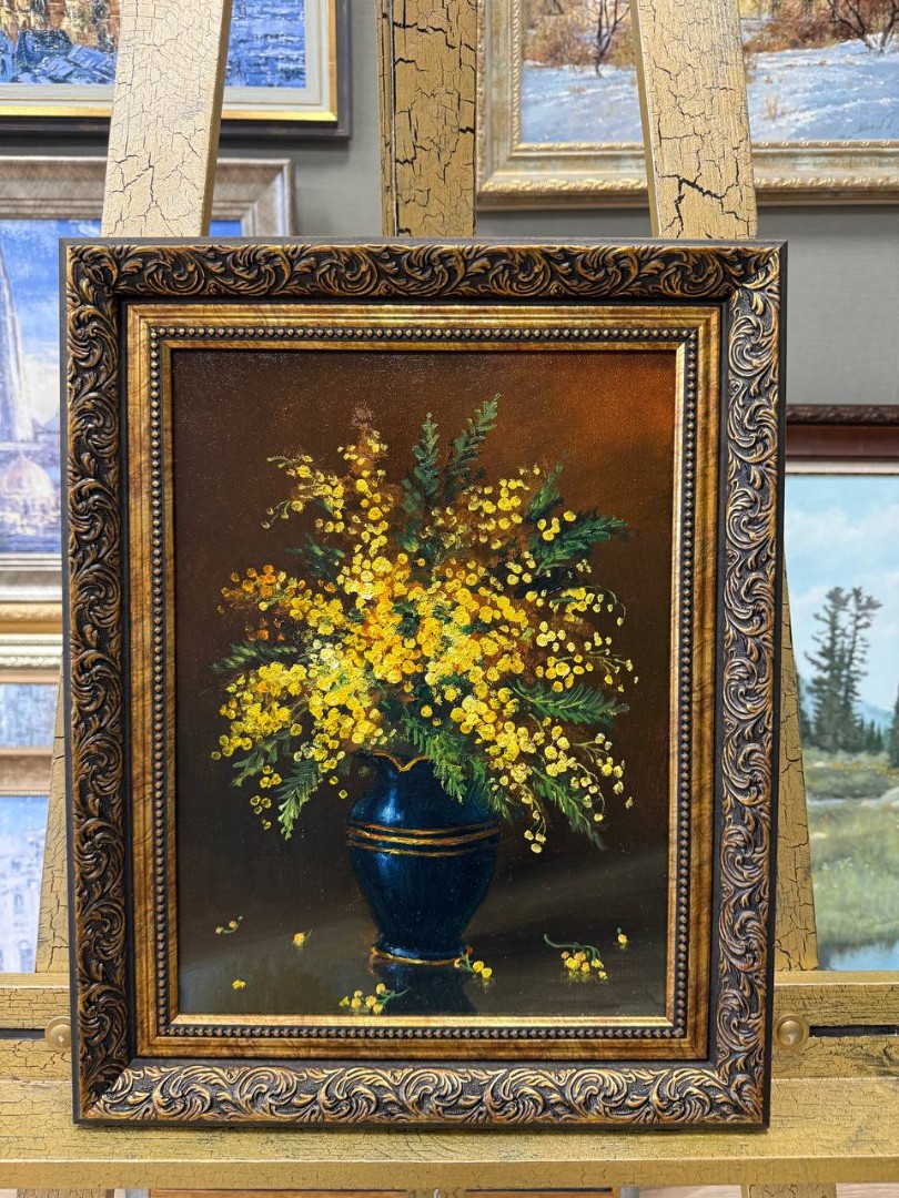 В нашем интернет-магазине картин, вы можете купить картину написанную маслом на холсте, под названием "Мимоза в вазе"