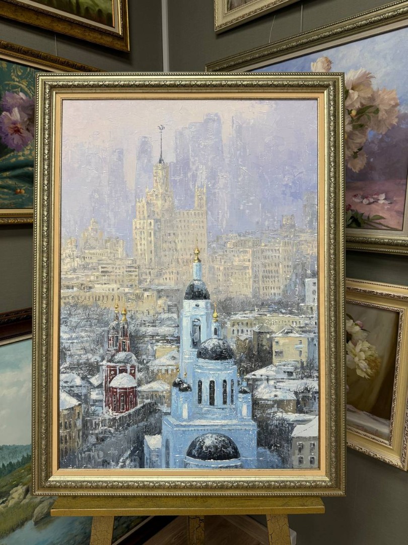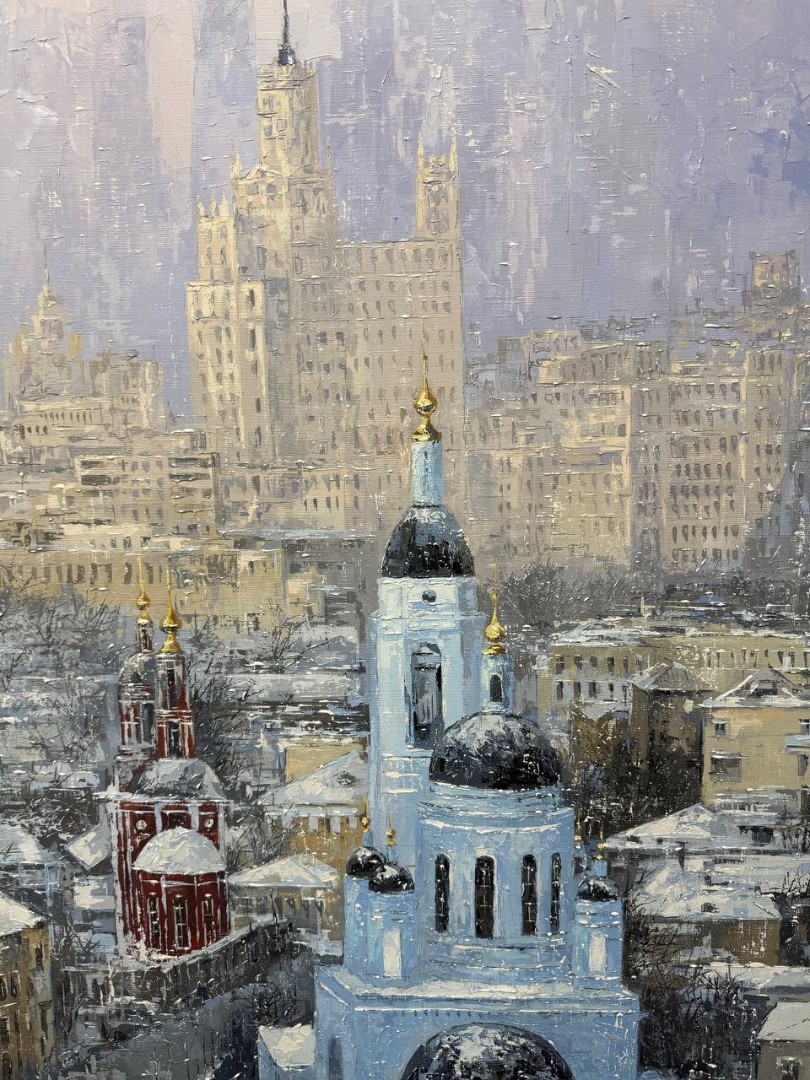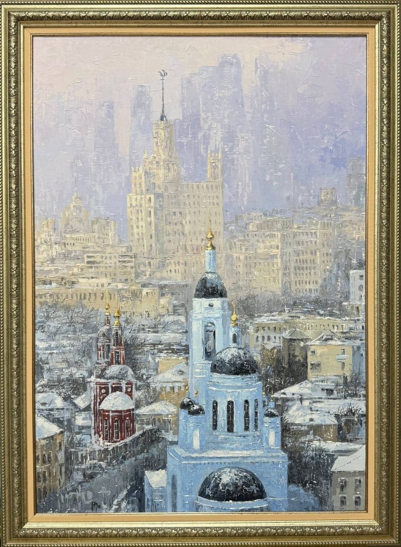 Картина написана маслом на холсте, городской пейзаж "Московский диалог времен".