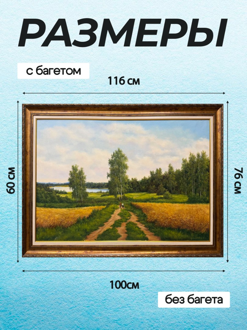 Картина написана маслом на холсте, летний пейзаж "На сенокос".