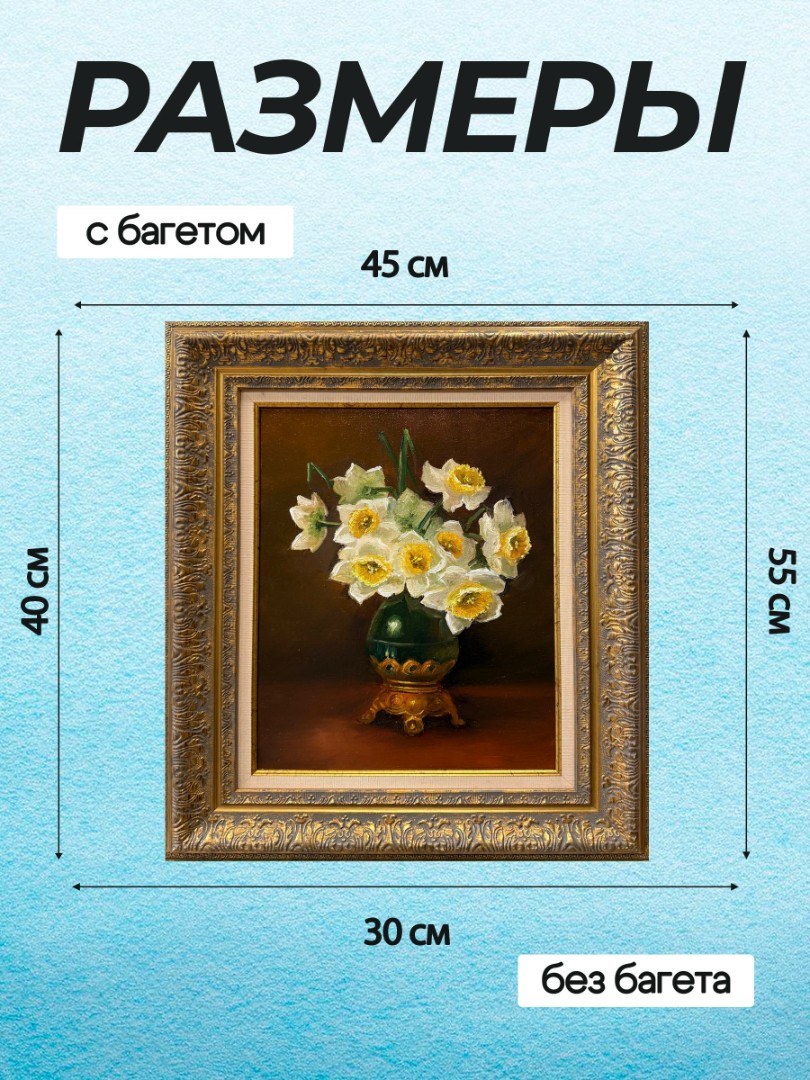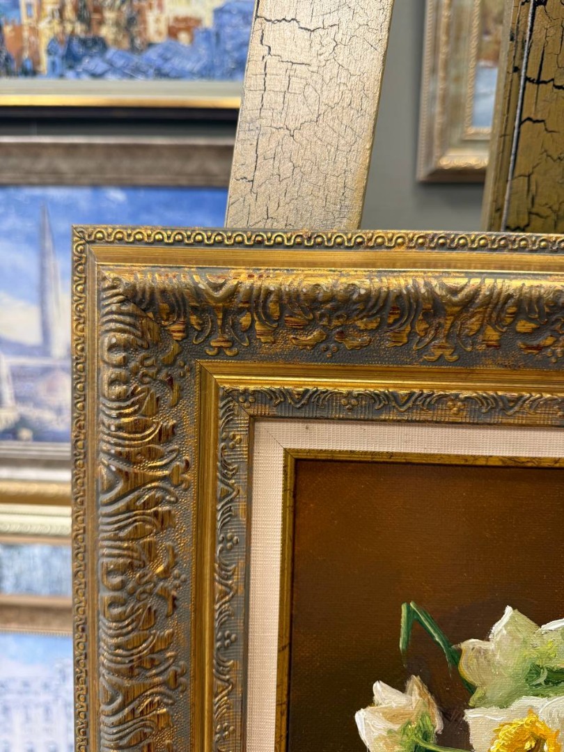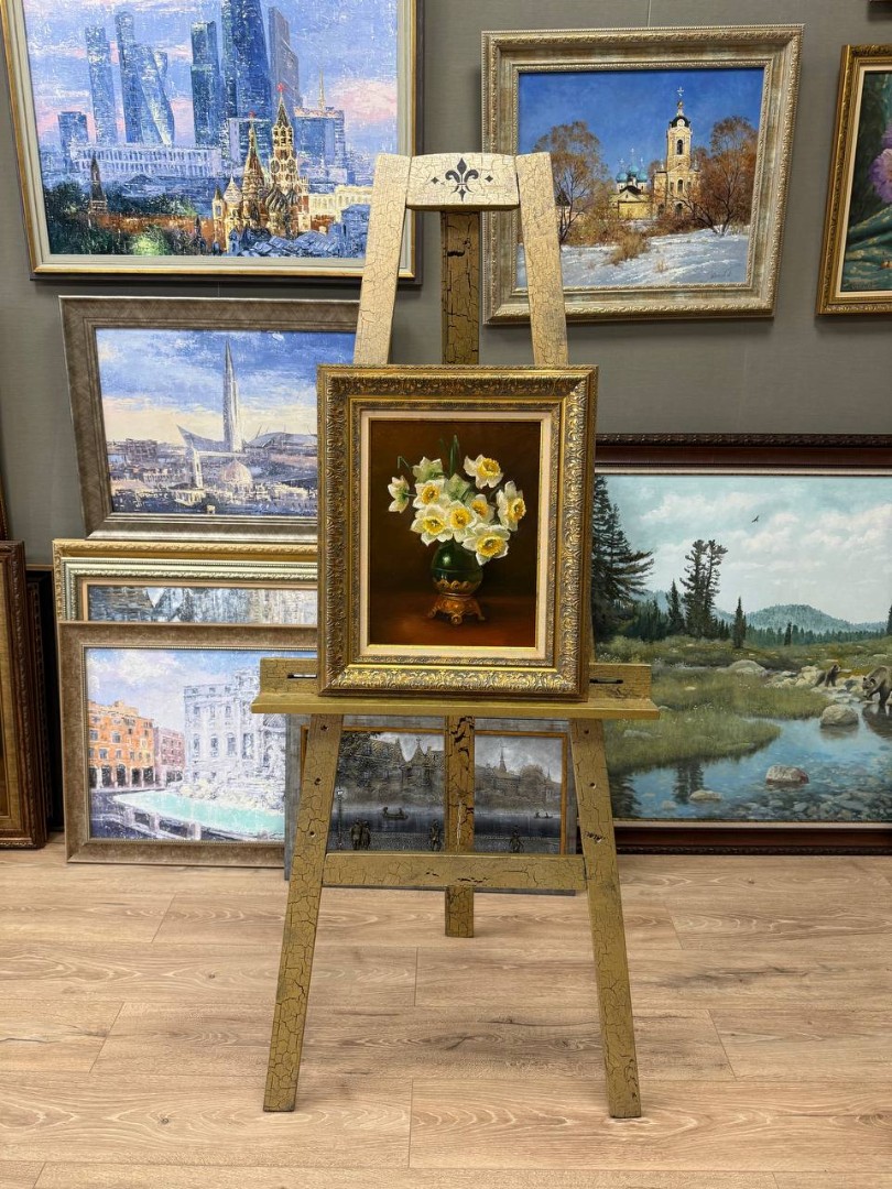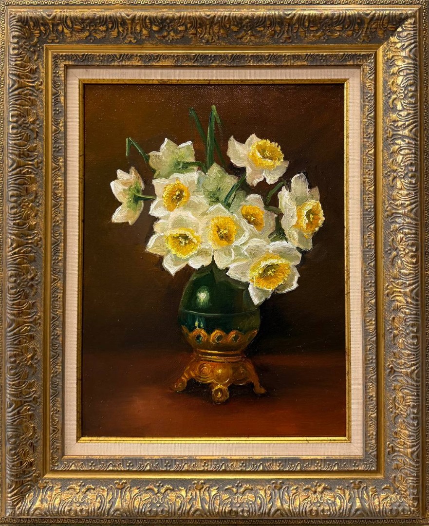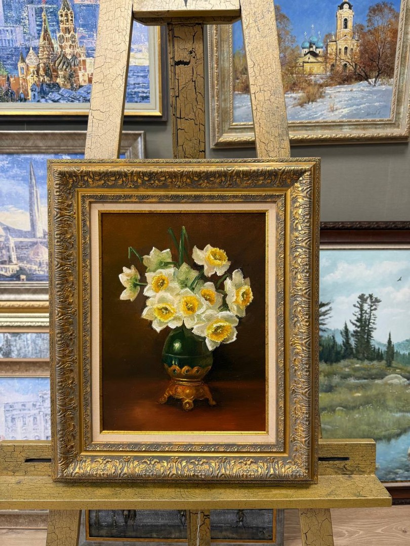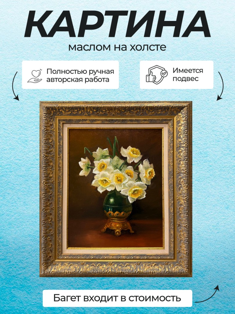 В нашем интернет-магазине картин, вы можете купить картину написанную маслом на холсте, под названием "Нарциссы в вазе"