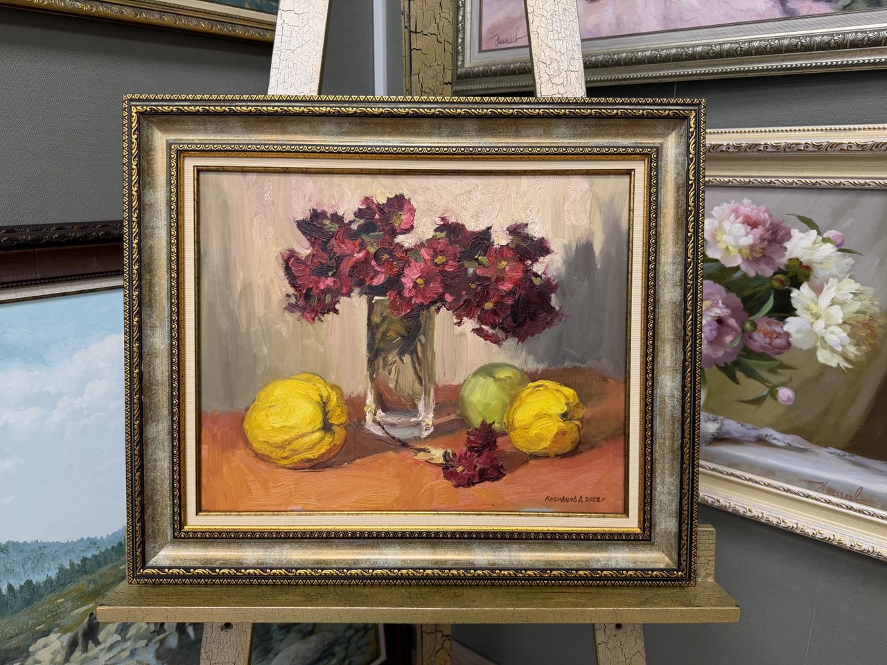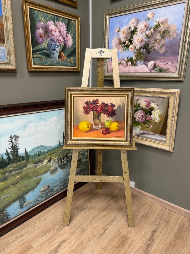 Картина написана маслом на холсте, натюрморт "Натюрморт с айвой".