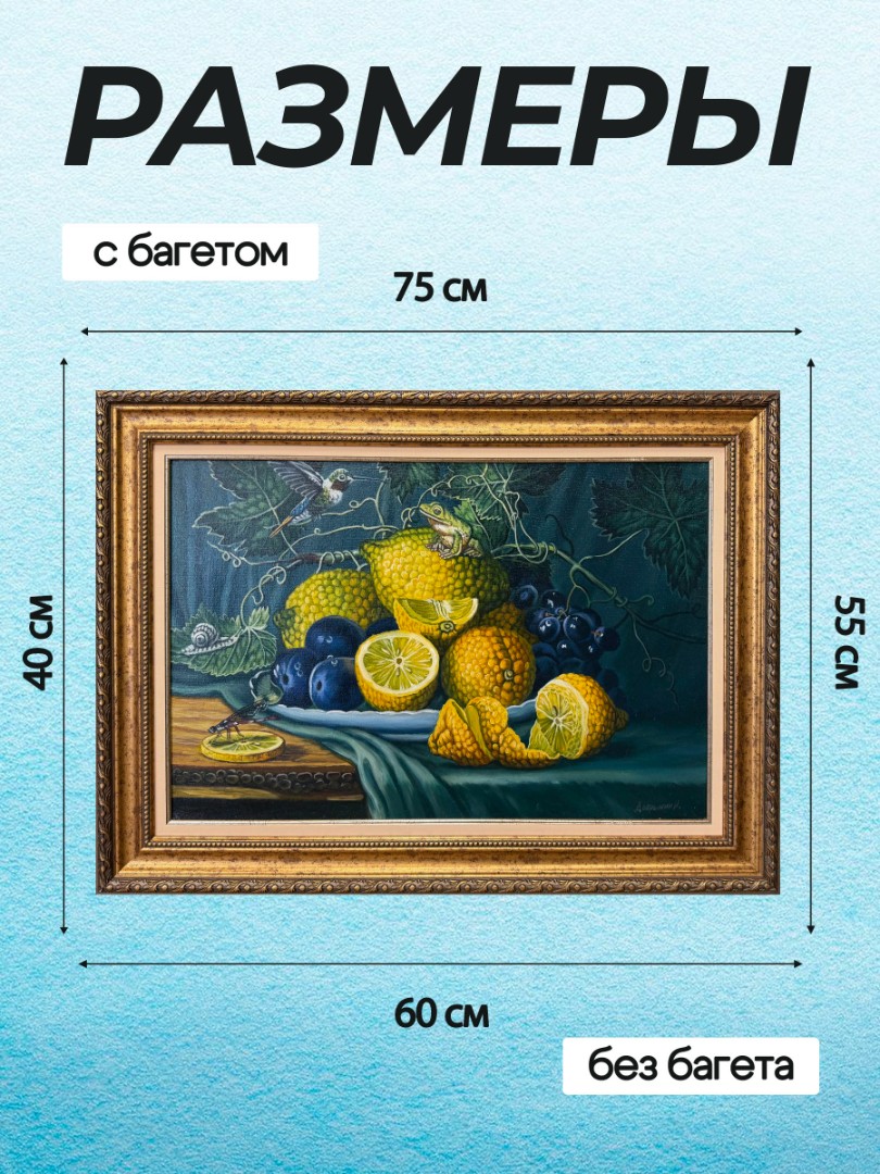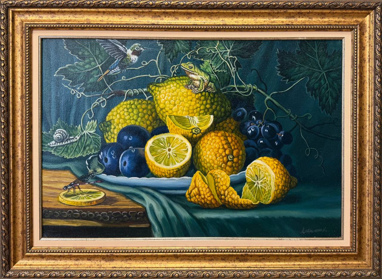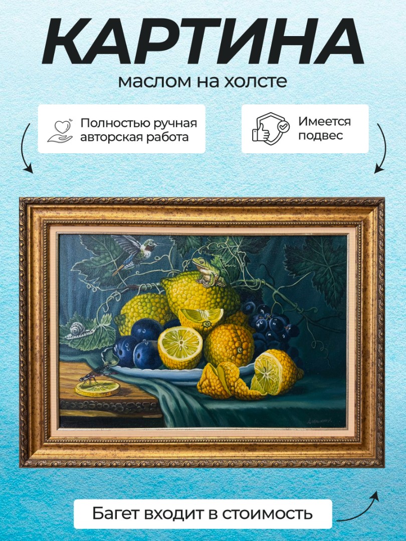Картина написана маслом на холсте, натюрморт "Натюрморт с лимонами".