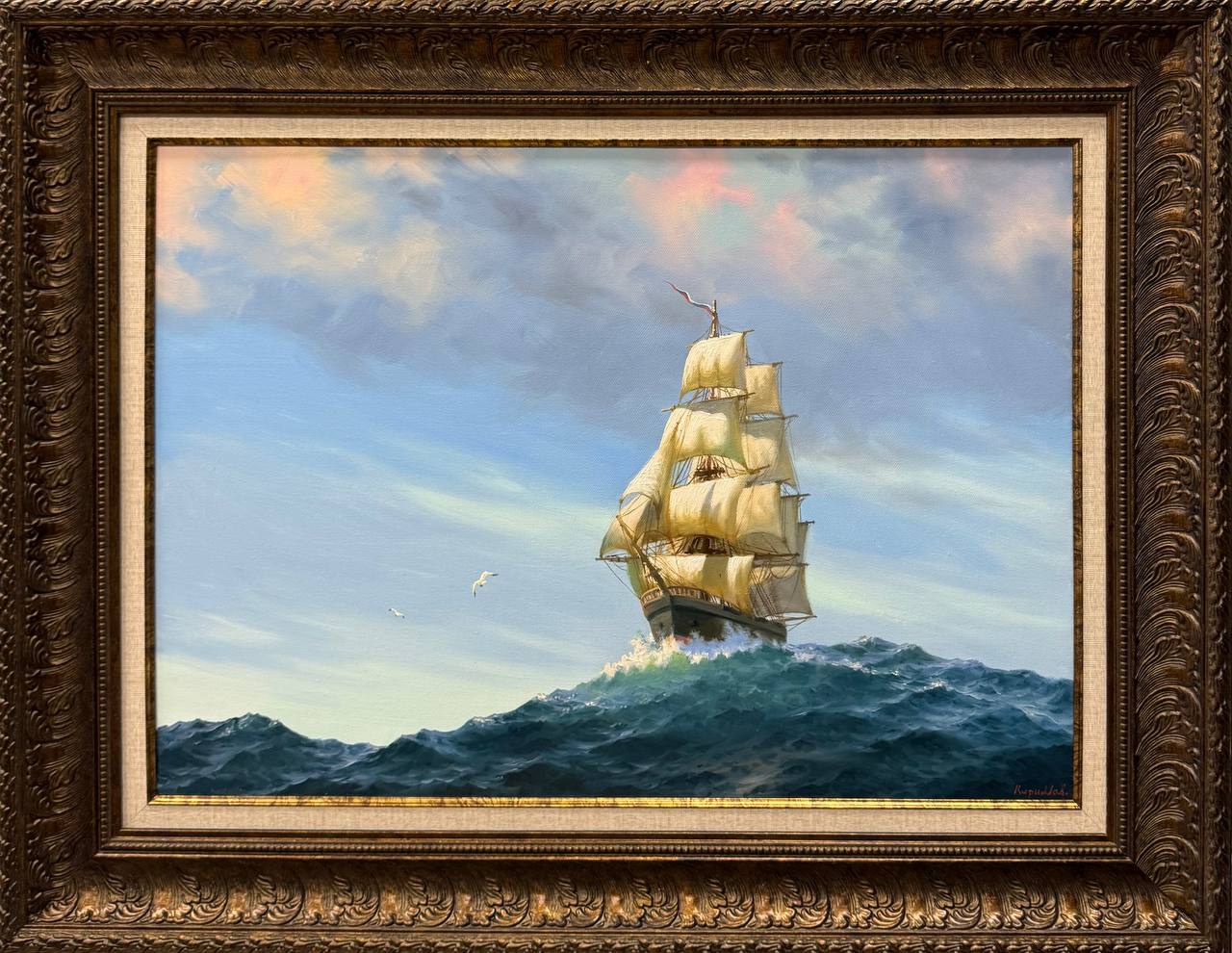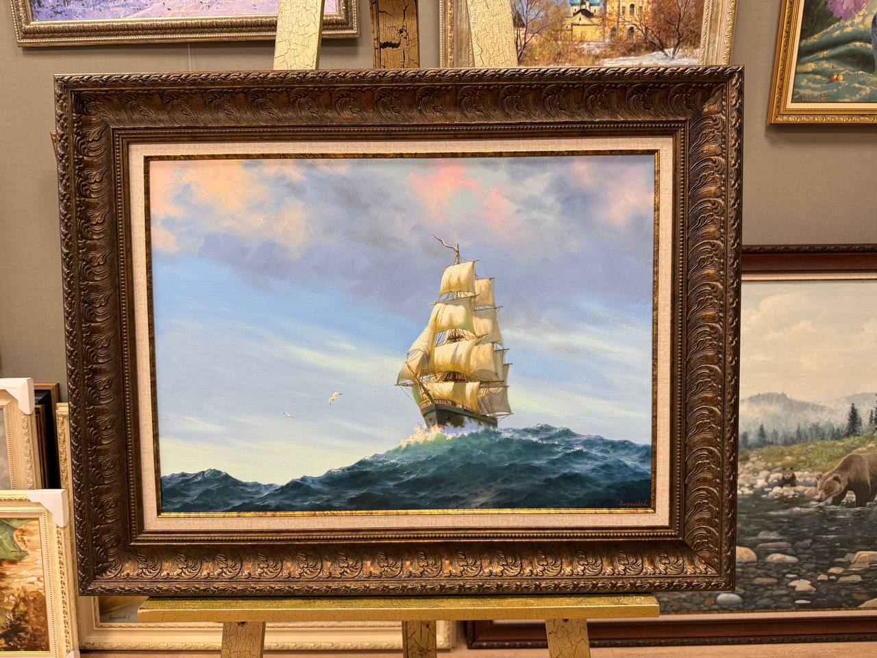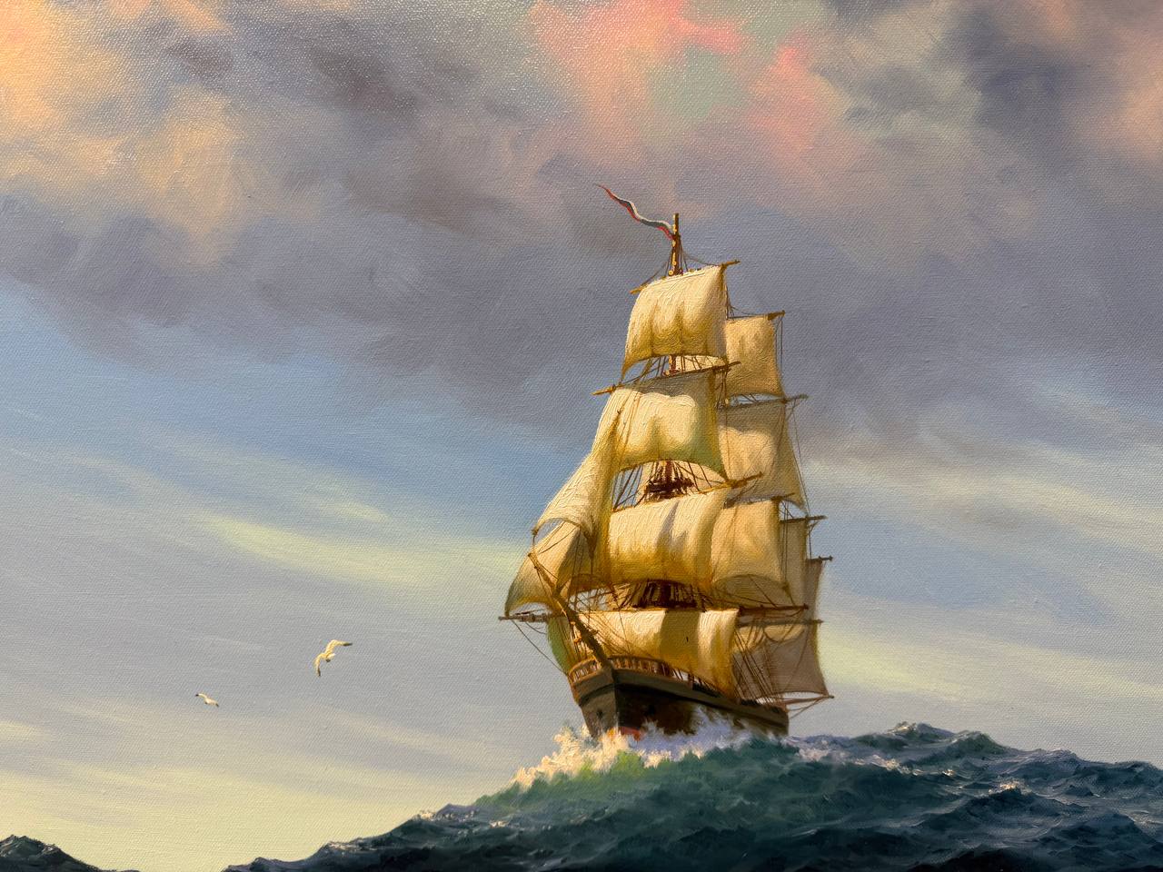 Картина написана маслом на холсте, морской пейзаж «Навстречу ветру».