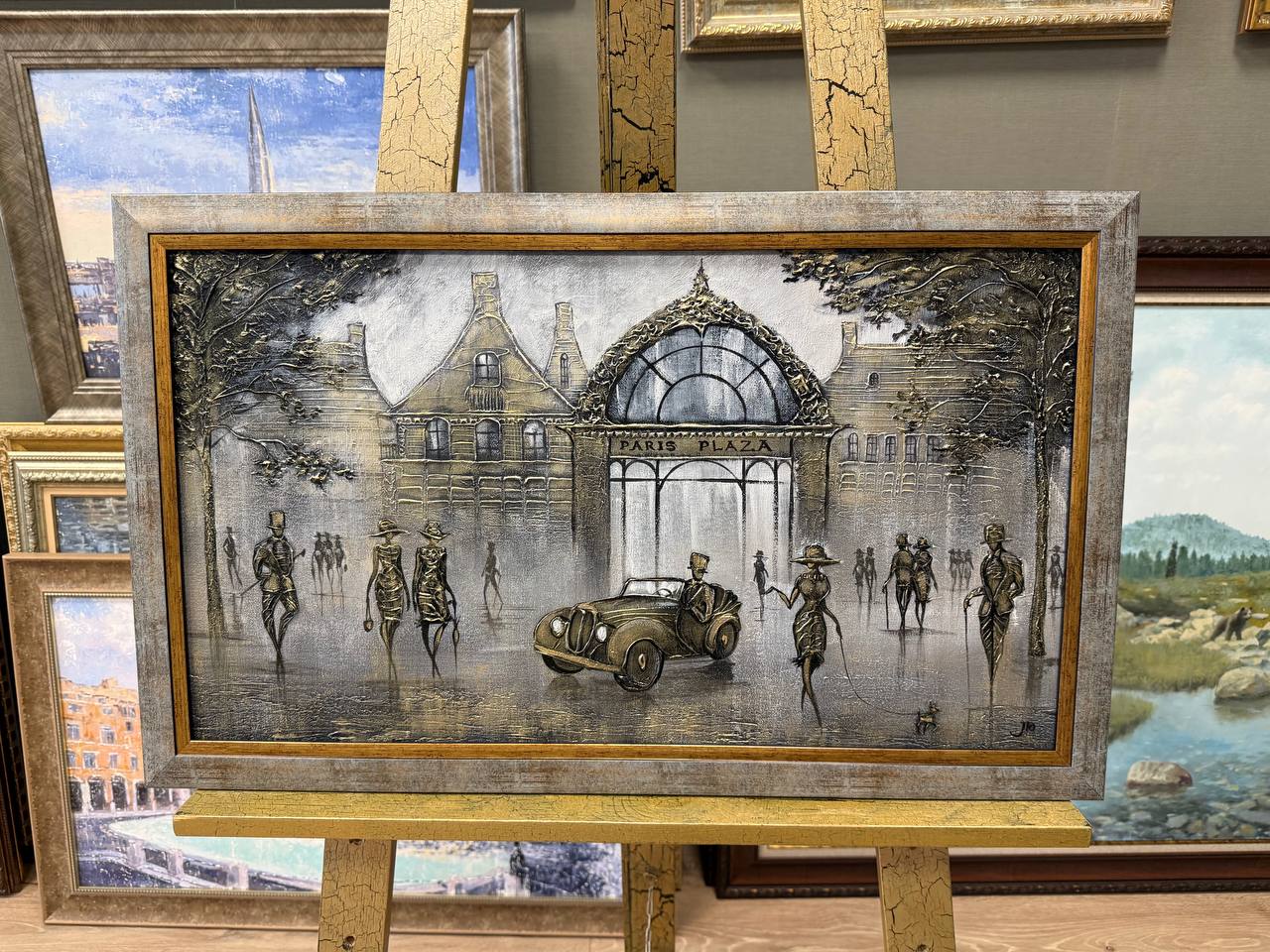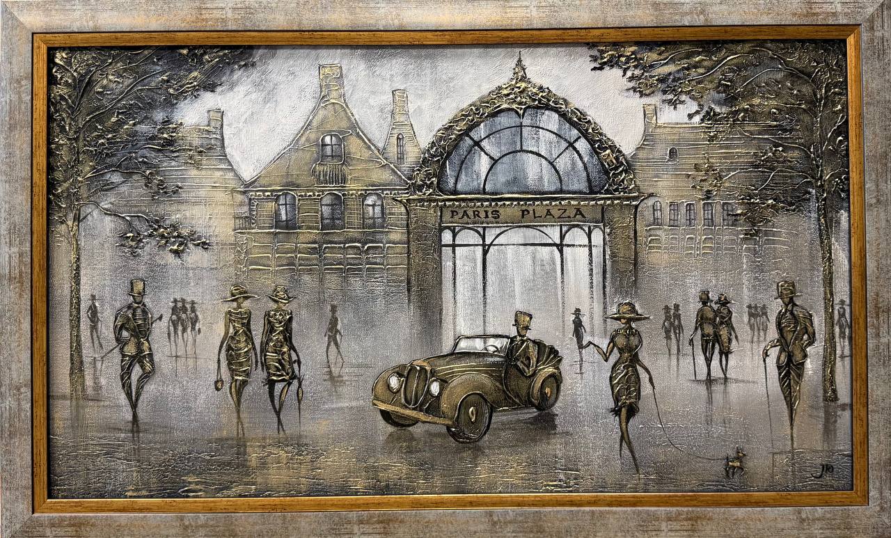 Облако людей, их разговоры и смех заполняют улицу, а легкие тени и свет, играющие на фасадах зданий, придают сцене глубину и объем. Вся композиция проникнута атмосферой ностальгии и романтики, передавая дух времени, когда прогулки по городу были настоящим искусством.