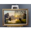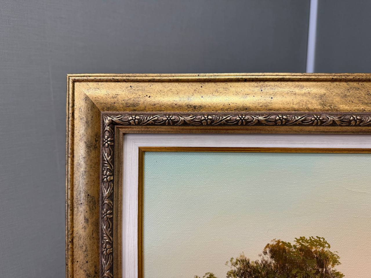 Картина маслом, на которой изображён летний пруд в окружении леса, создаёт атмосферу спокойствия и безмятежности. Солнечные лучи играют на поверхности воды, создавая блики и тени. Деревья, окружающие пруд, создают прохладную тень, приглашая отдохнуть в своём укрытии.