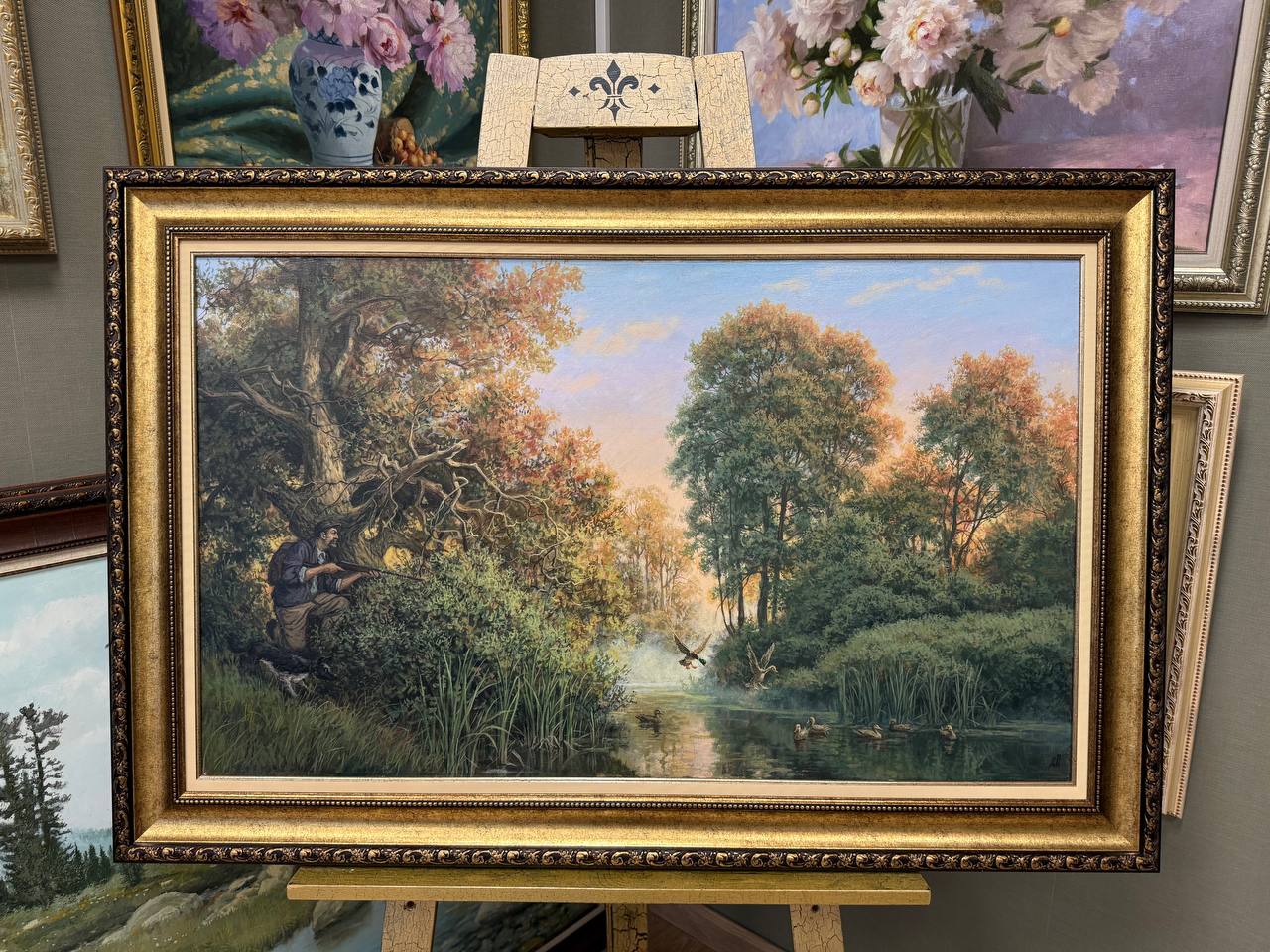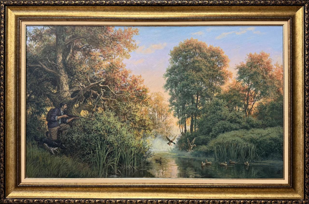 Картина написана маслом на холсте, летний пейзаж "Охота на уток".