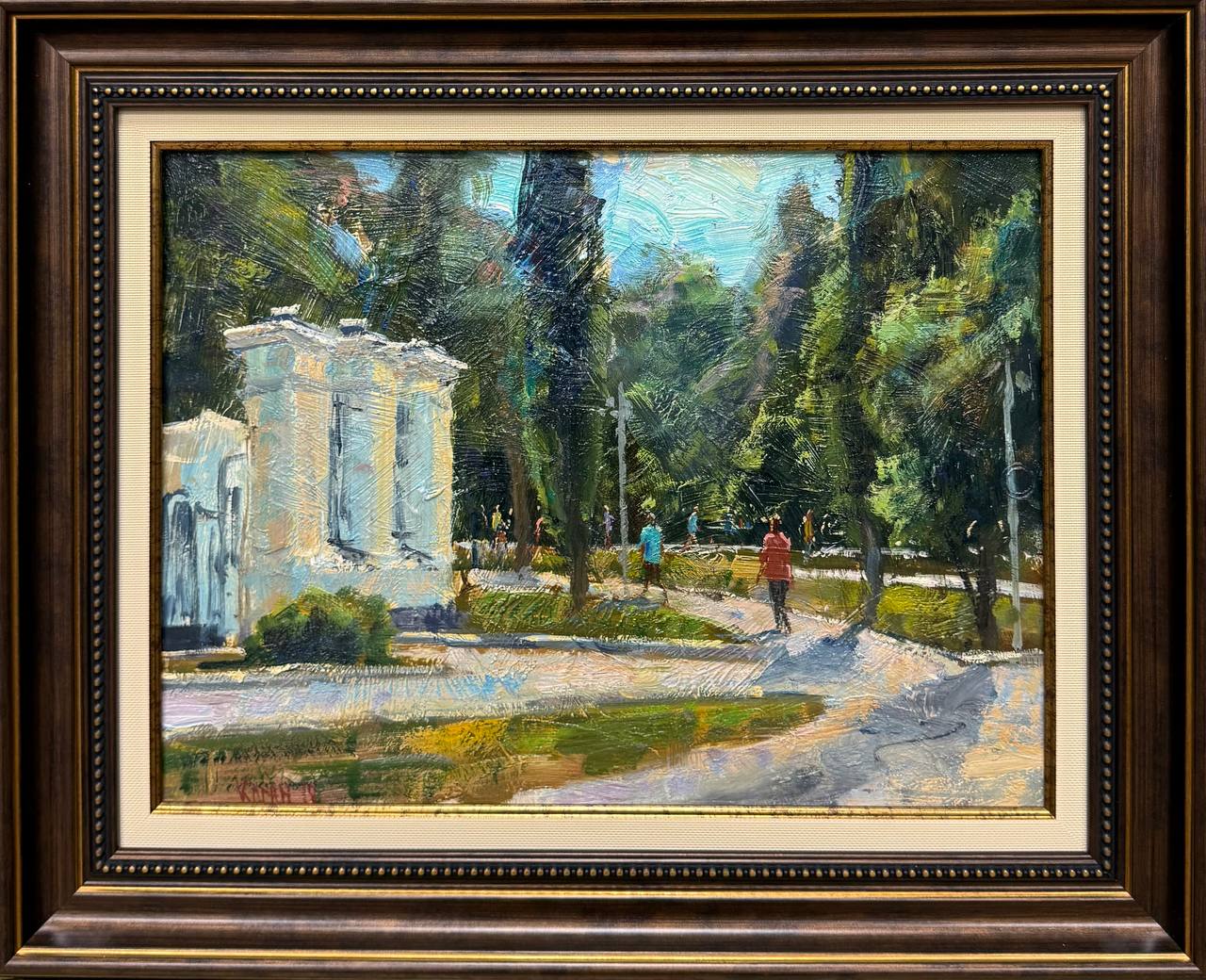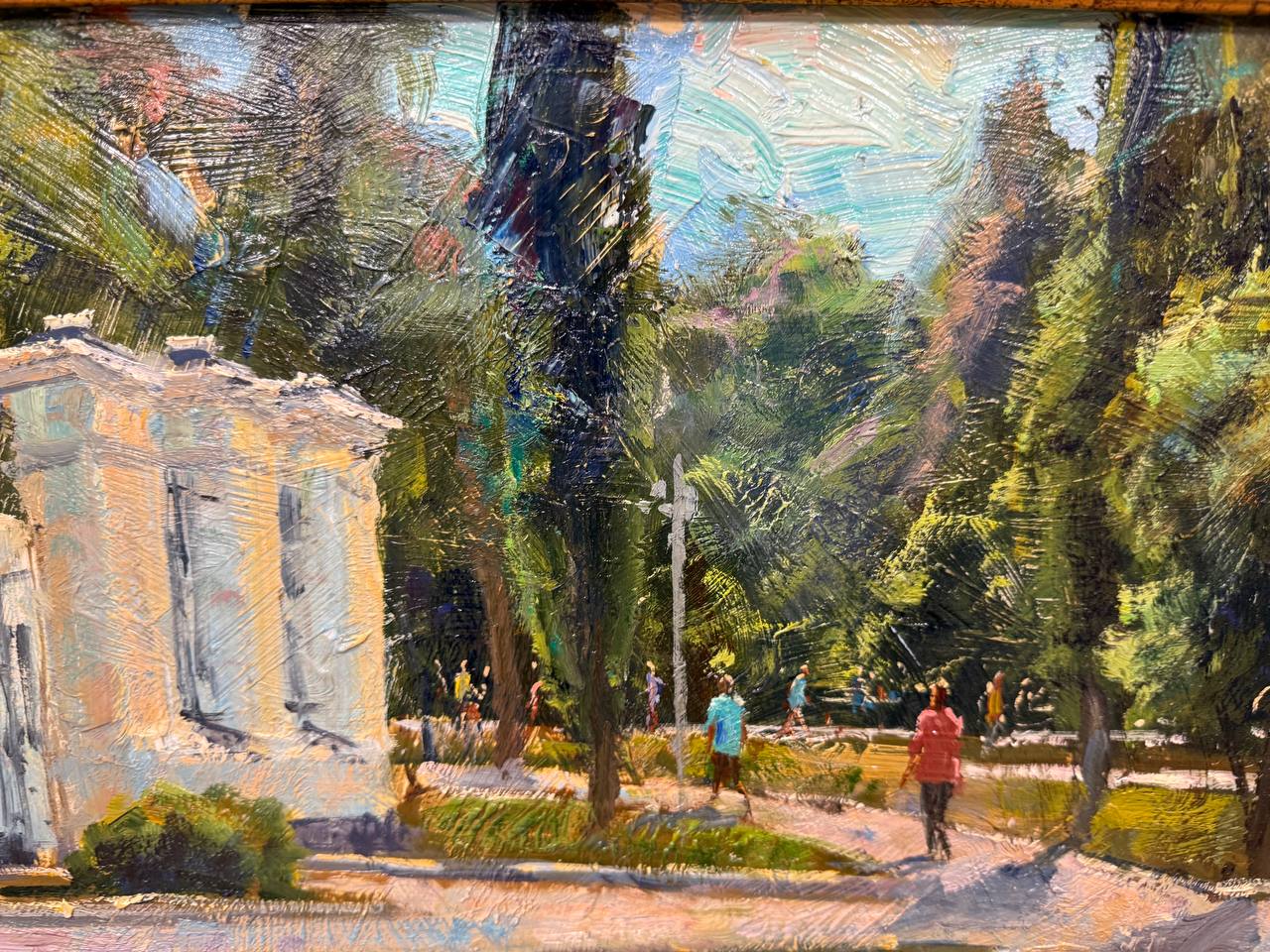 Картина написана маслом на мдф, летний пейзаж "Парк Музеон".