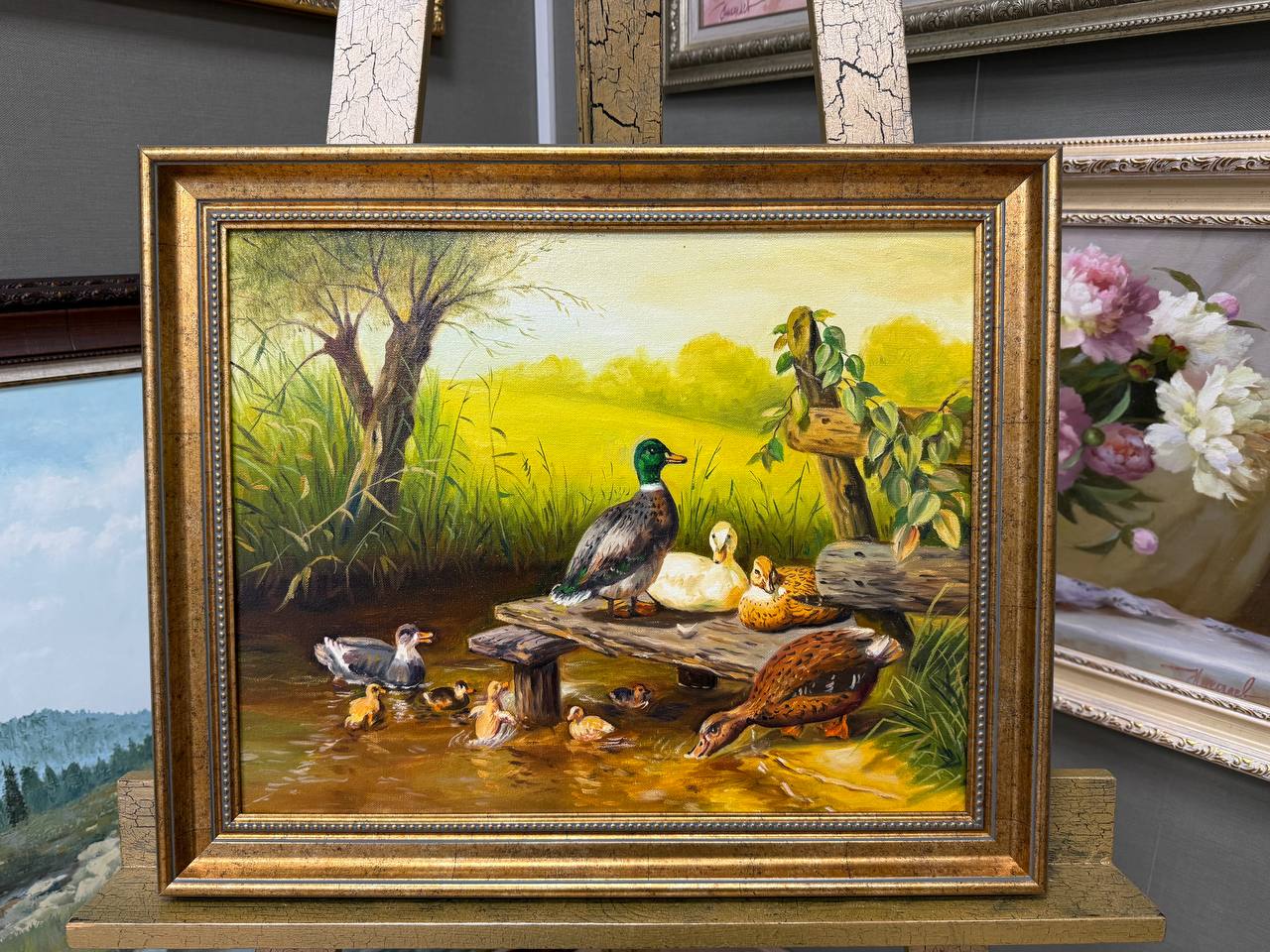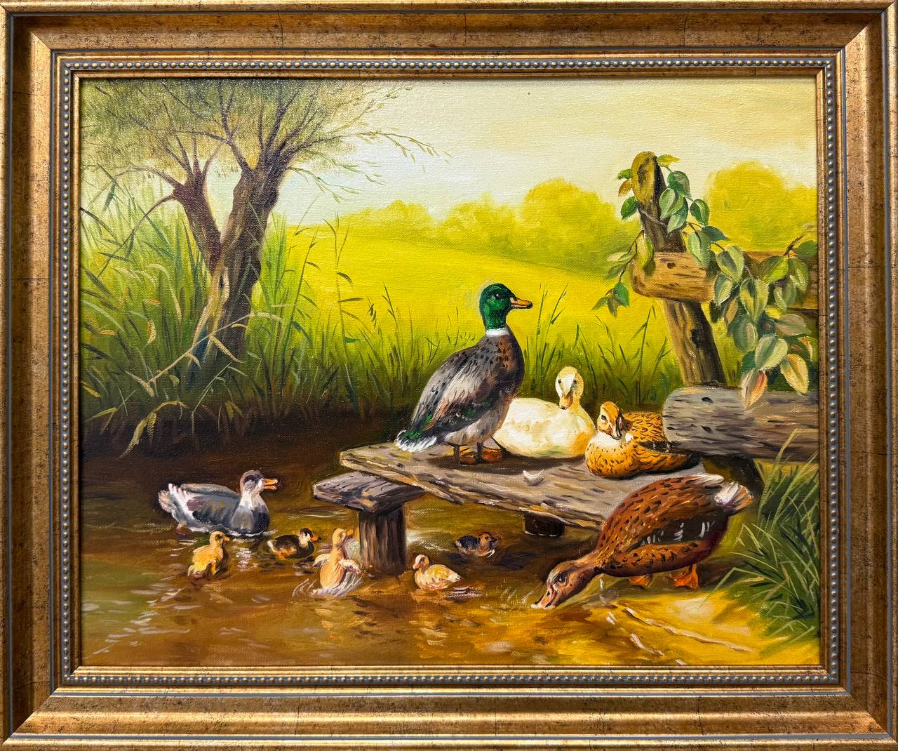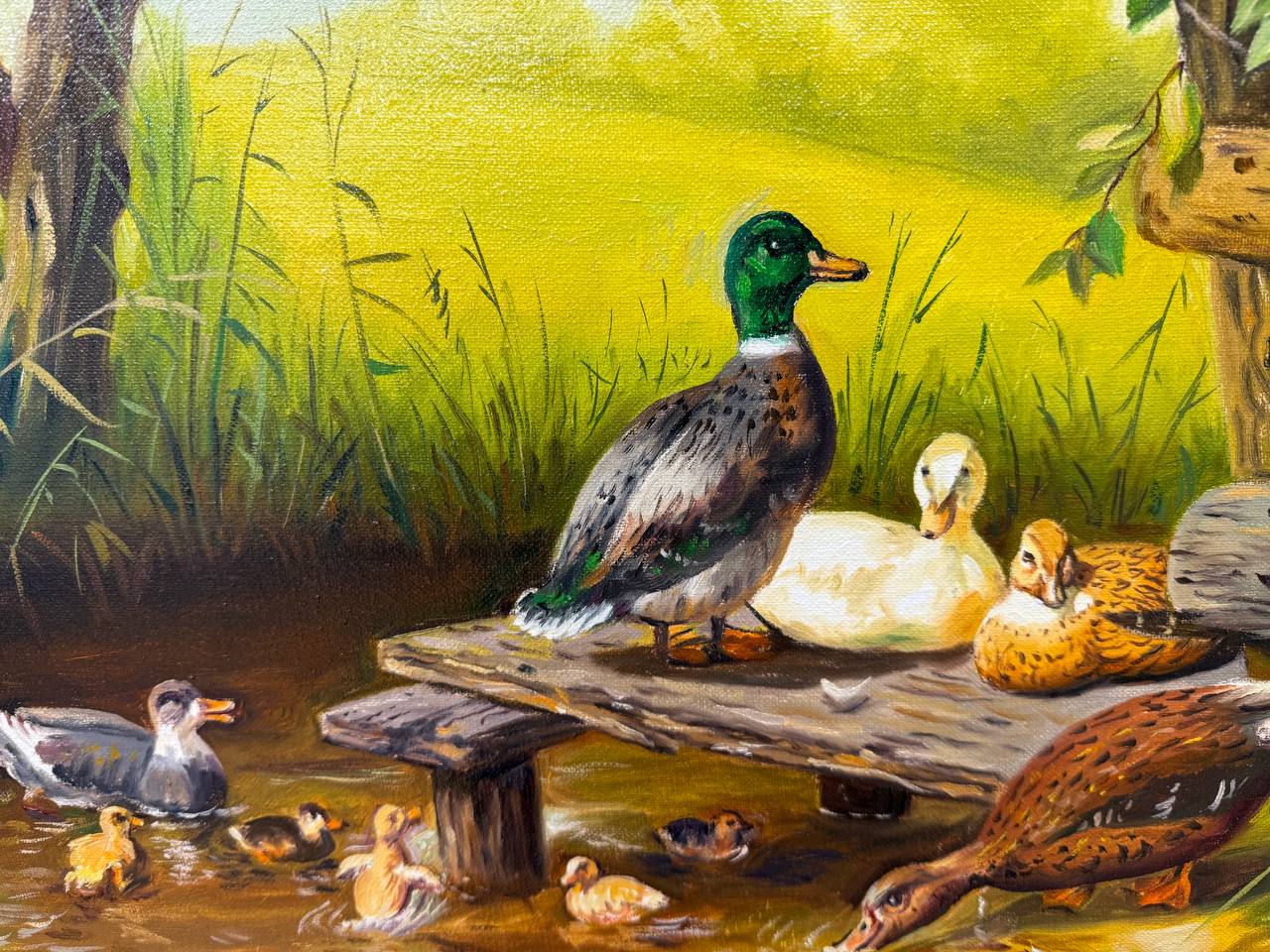 Картина написана маслом на холсте, анималистика "Пейзаж с утками".