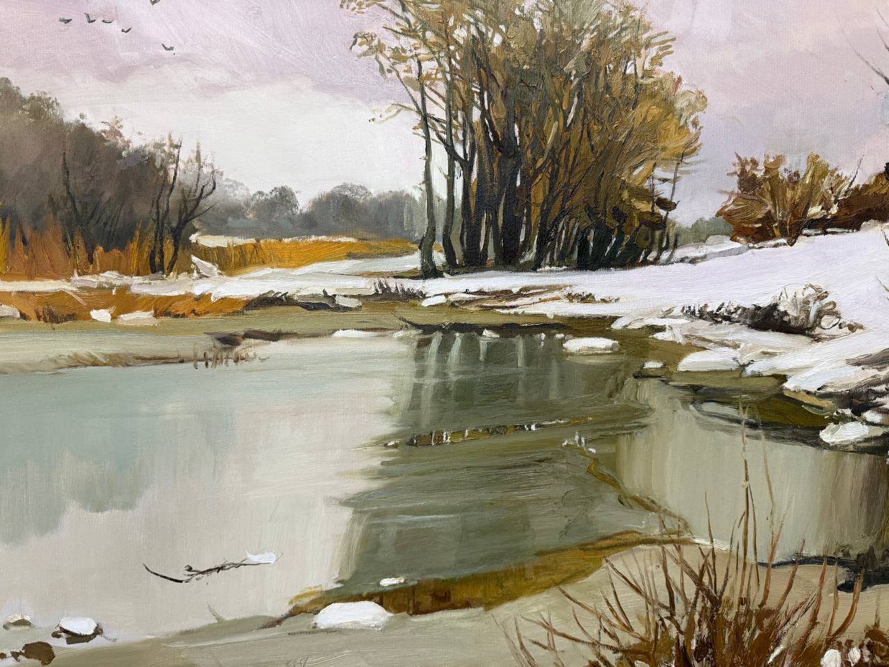 Картина написана маслом на холсте, осенний пейзаж "Первый снег" 2.