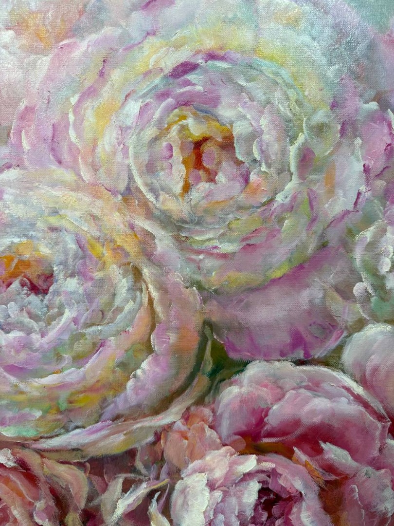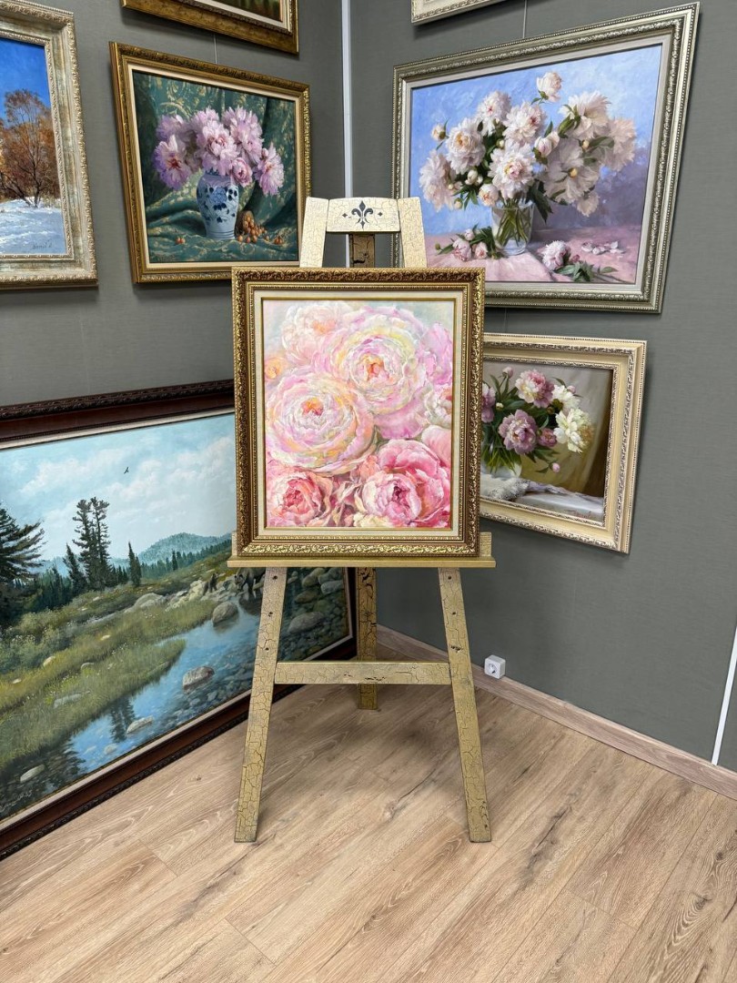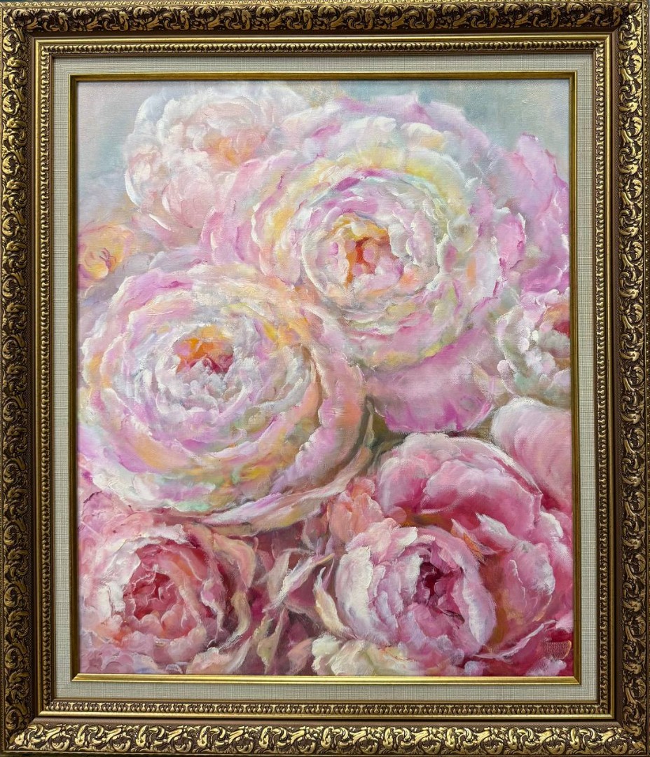 Картина написана маслом на холсте "Нежные пионы"