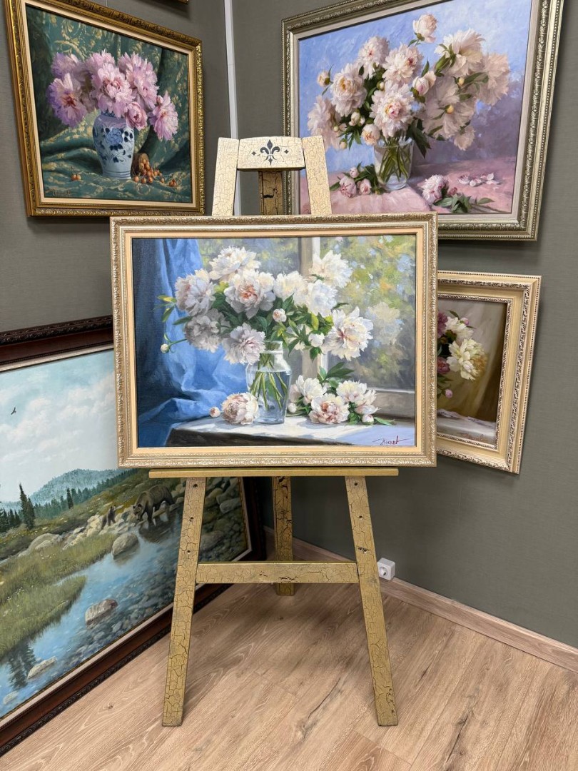 В нашем интернет-магазине картин, вы можете купить картину написанную маслом на холсте, под названием "Пионы на окне"