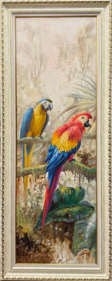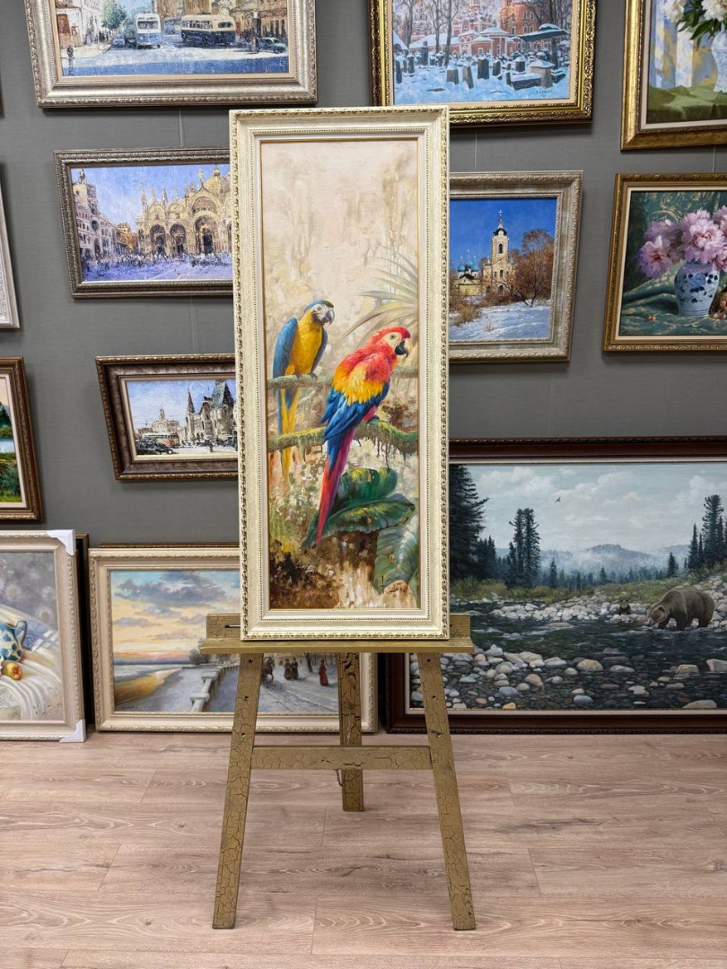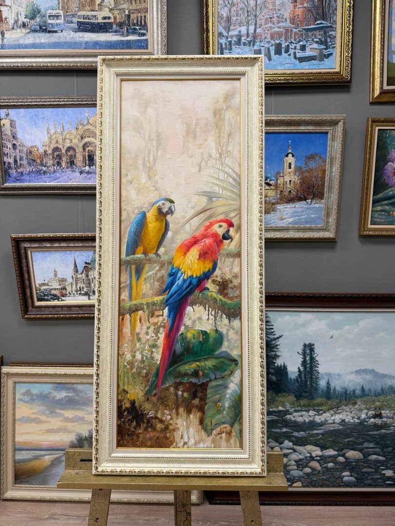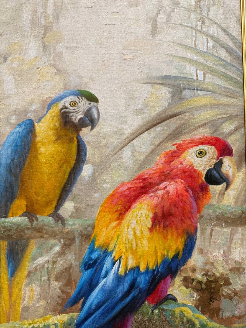 Картина написана маслом на холсте, анималистика "Попугаи".