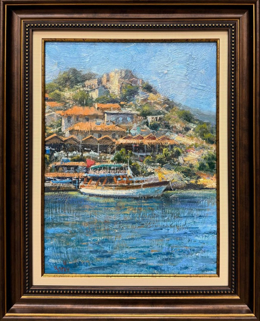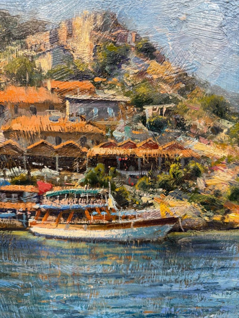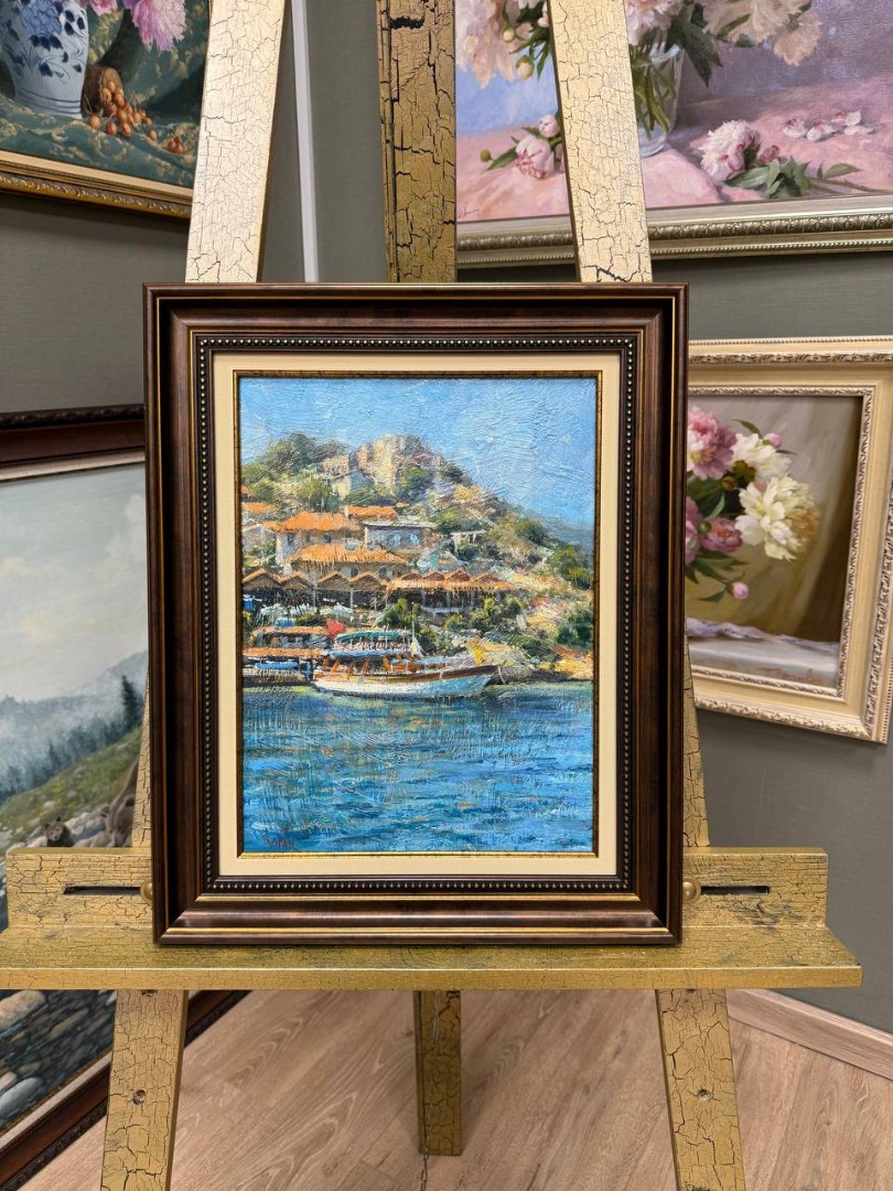 В нашем интернет-магазине картин, вы можете купить картину написанную маслом на мдф, под названием "Прибрежный городок"