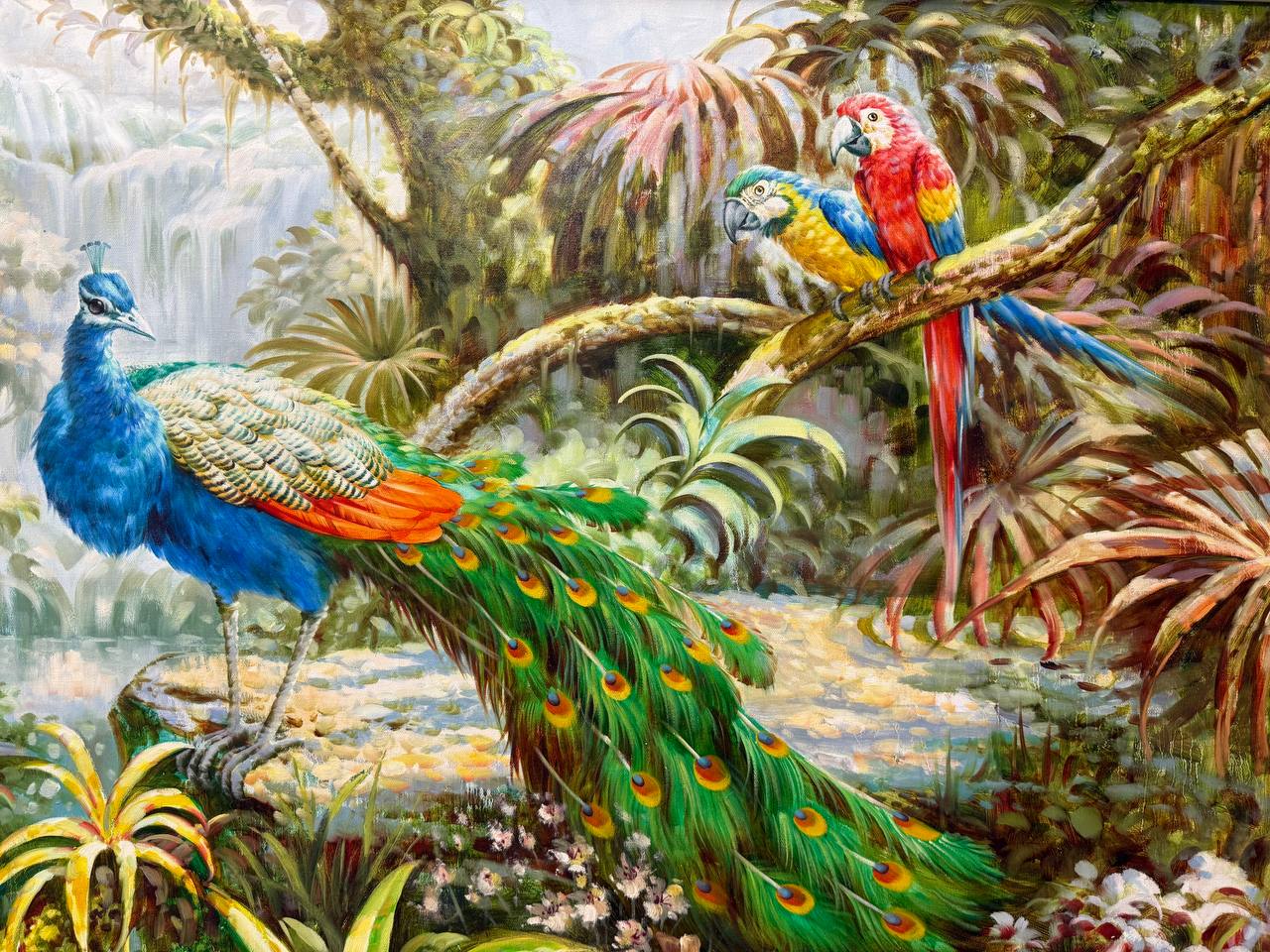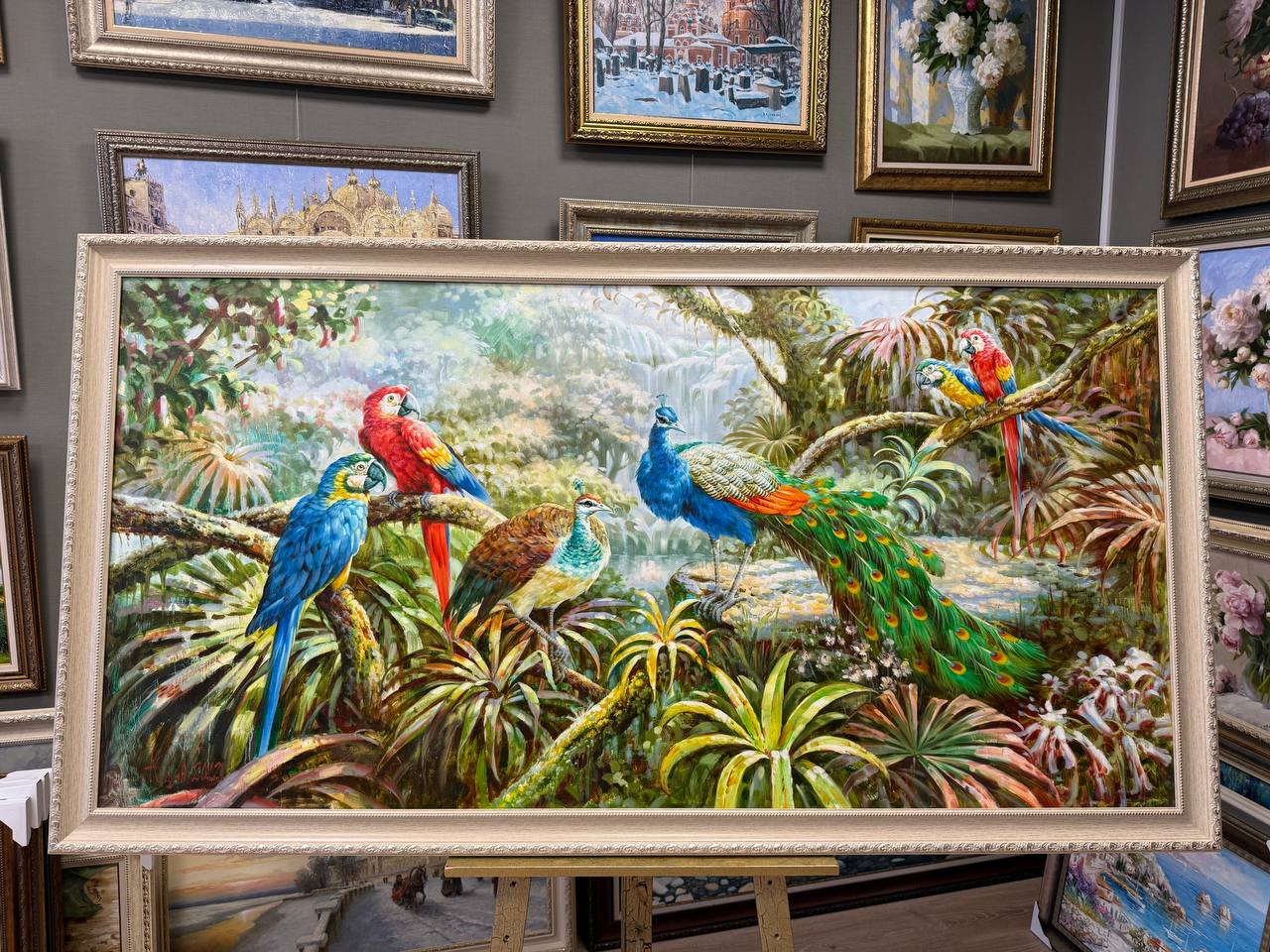 Картина написана маслом на холсте, анималистика "Райские птицы".