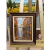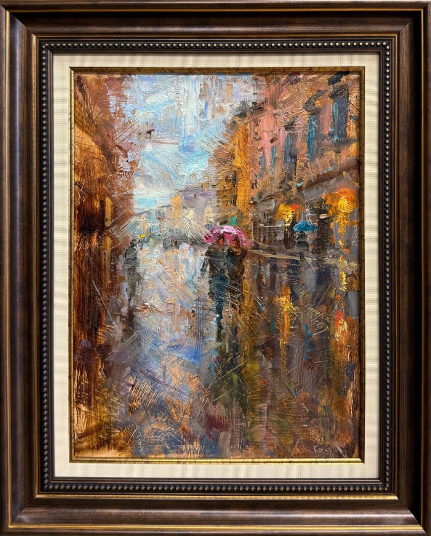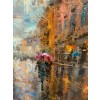 Картина написана маслом на мдф, Италия, городской пейзаж "Римини. Дождливый вечер".