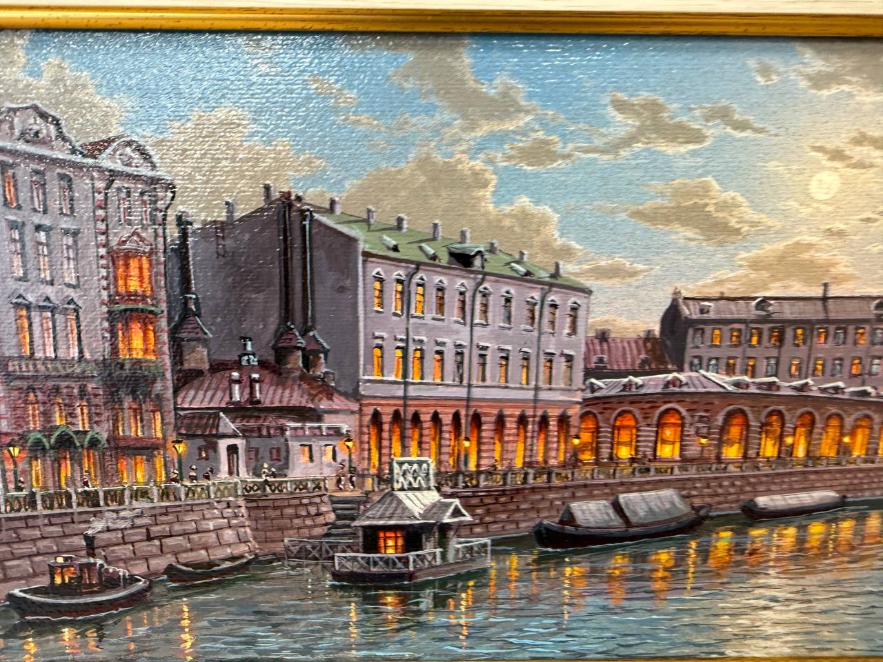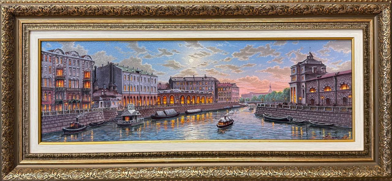 Картина написана маслом на холсте, городской пейзаж "Санкт-Петербург начало 20 века. Набережная реки Мойки".