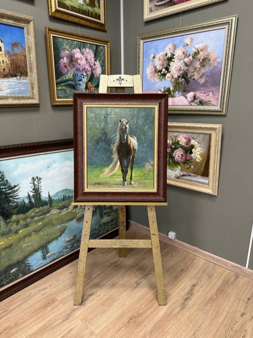 В нашем интернет-магазине картин, вы можете купить картину написанную маслом на холсте, под названием "Шепот ветра в гриве"