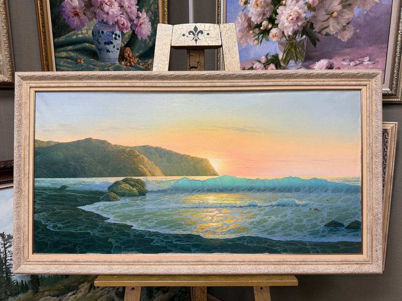 Картина написана маслом на холсте, морской пейзаж "Шепот волн".