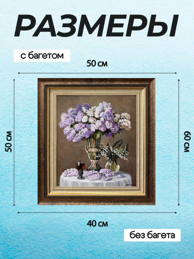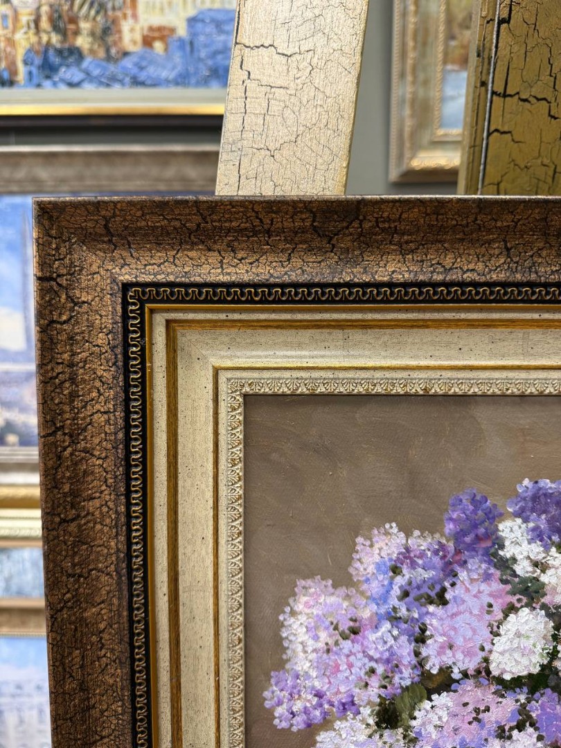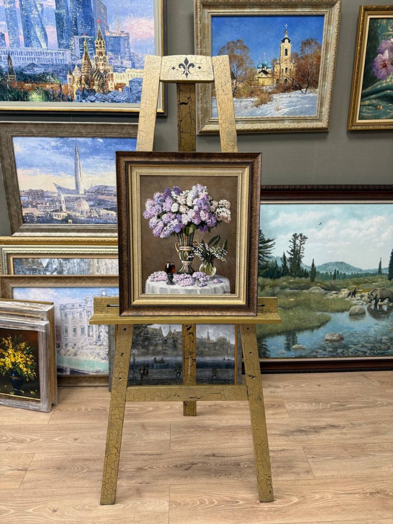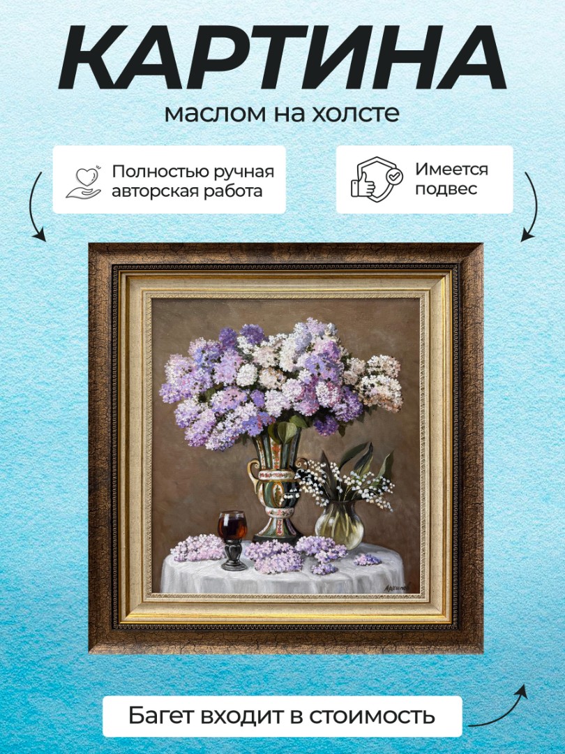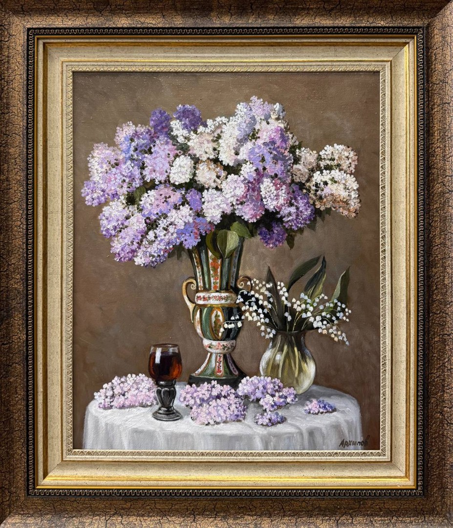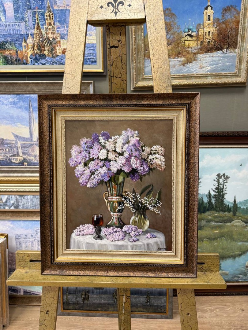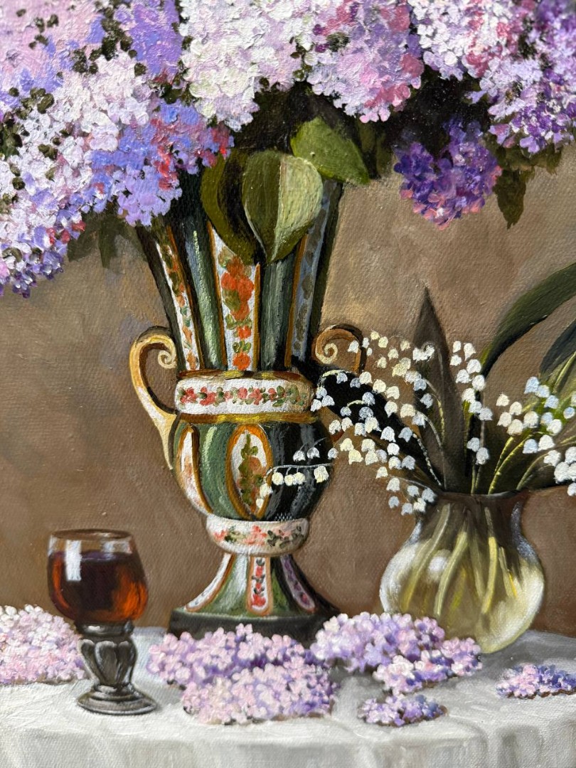 В нашем интернет-магазине картин, вы можете купить картину написанную маслом на холсте, под названием "Сирень и ландыши"