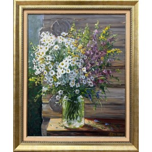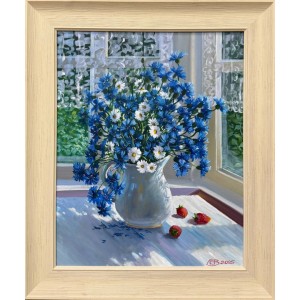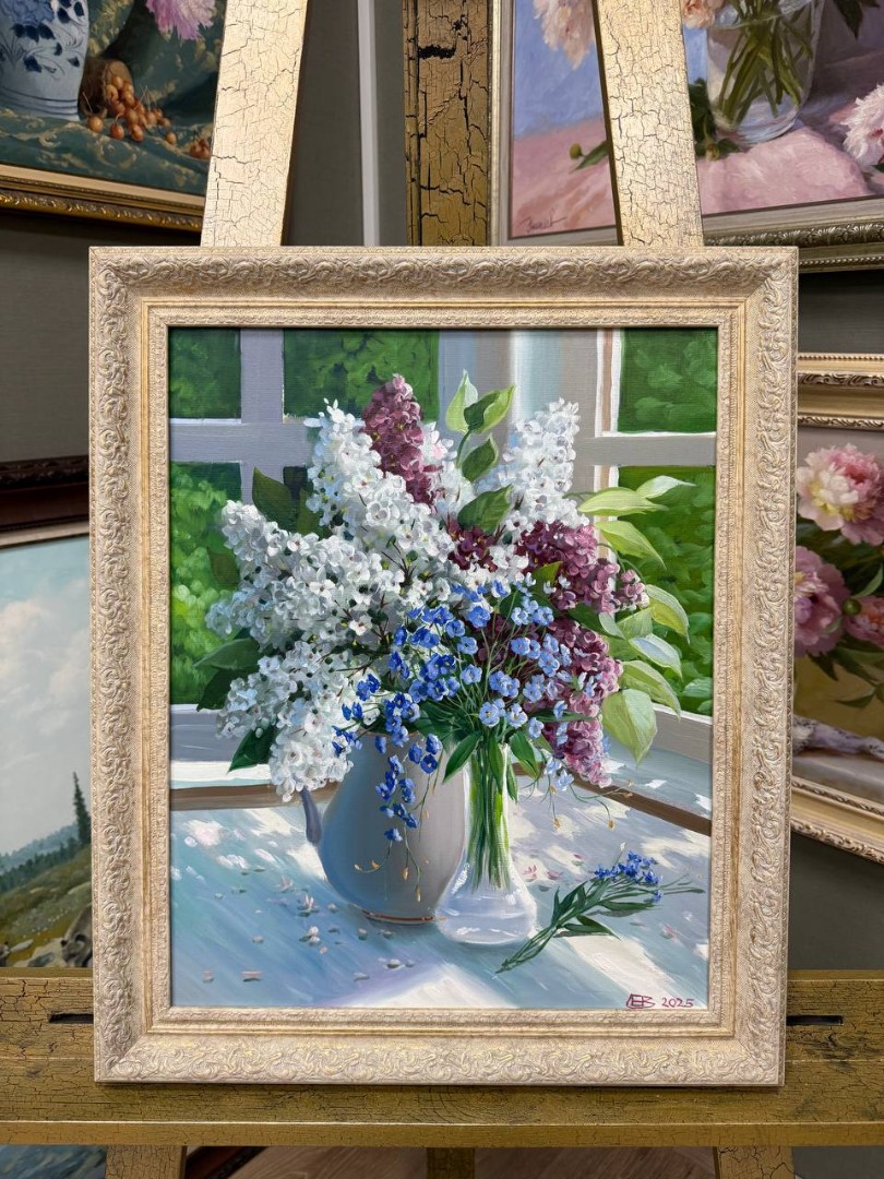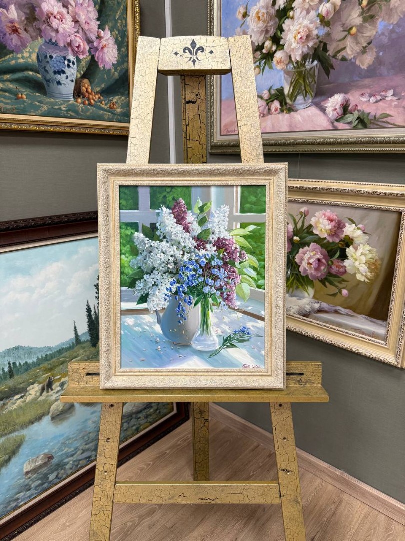 В нашем интернет-магазине картин, вы можете купить картину написанную маслом на холсте, под названием "Сирень и незабудки"