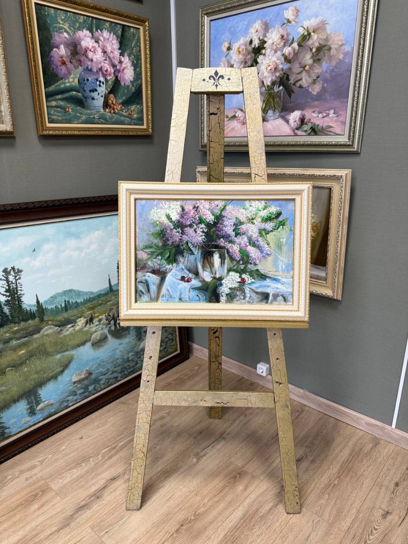 В нашем интернет-магазине картин, вы можете купить картину написанную маслом на холсте, под названием "Сирень и вишня"