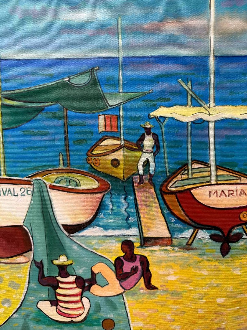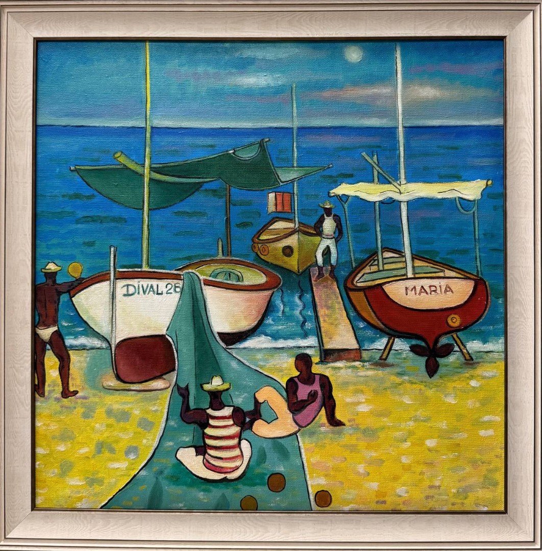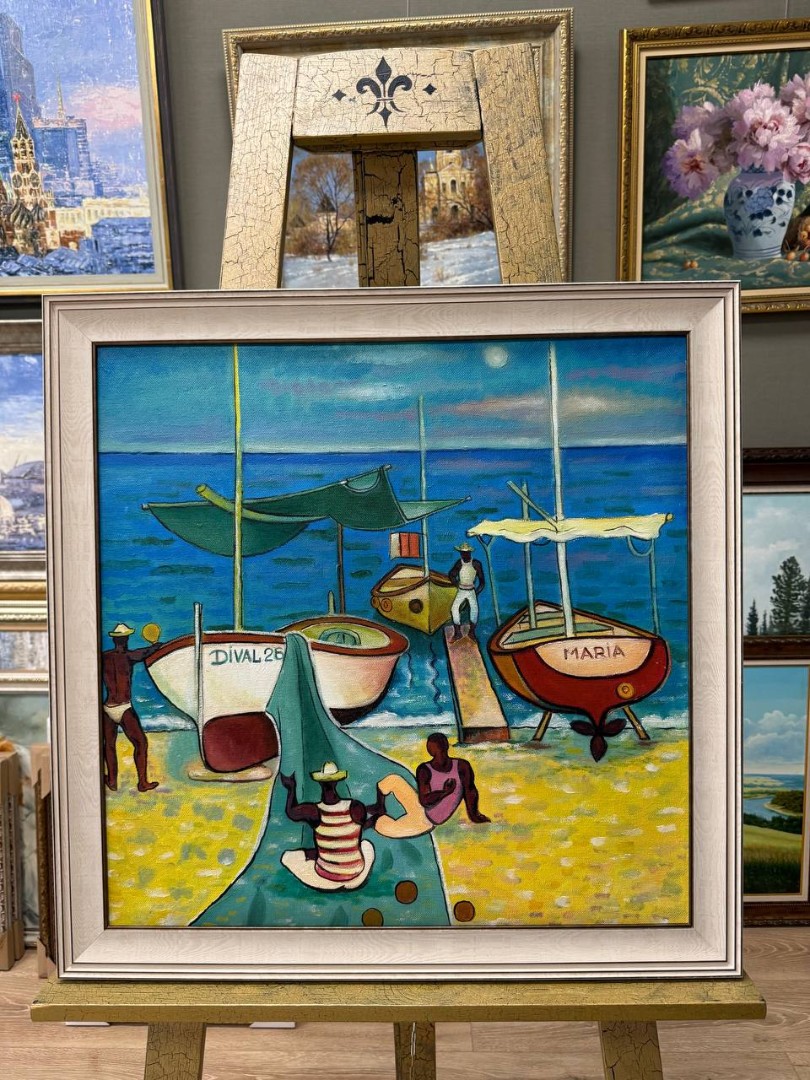 Смотришь на картину и хочется бежать босиком по тёплому песку, смеясь, прыгать в прохладные волны и греться под солнцем, которое здесь всегда щедрое и доброе.