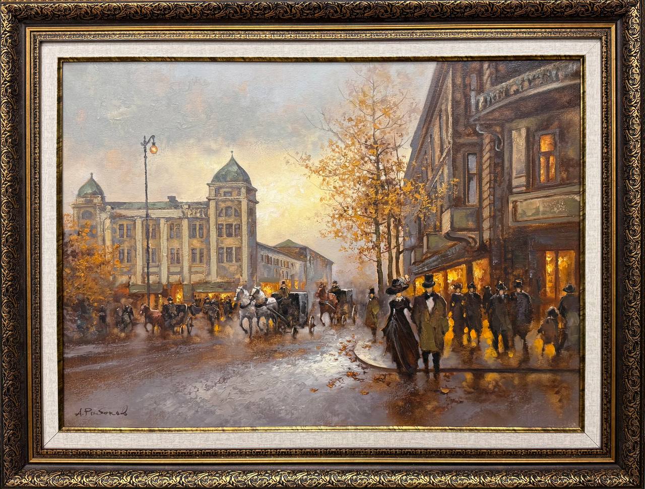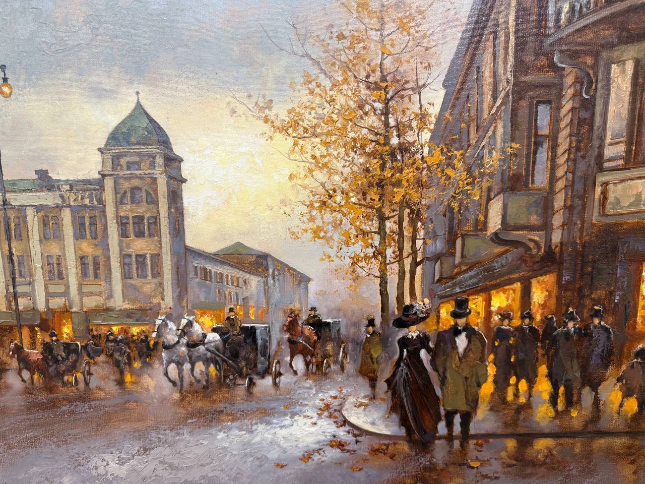 Картина написана маслом на холсте, городской пейзаж "Старая Москва. Тверская улица".