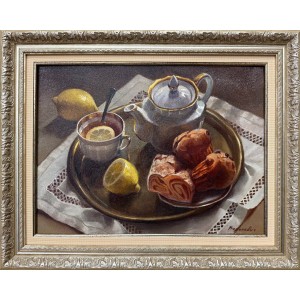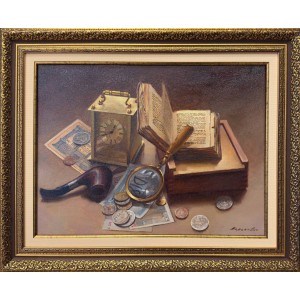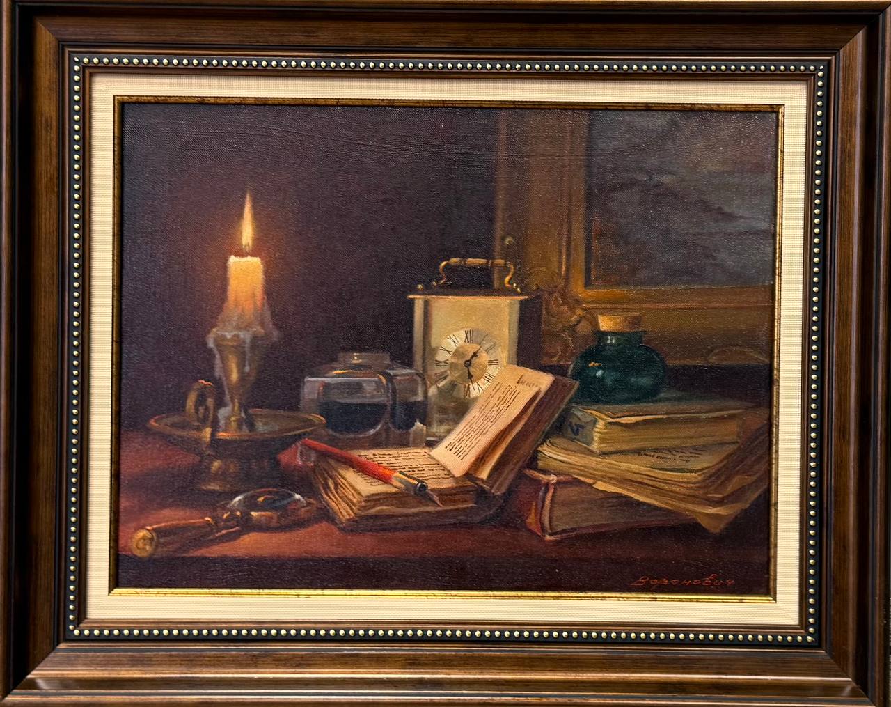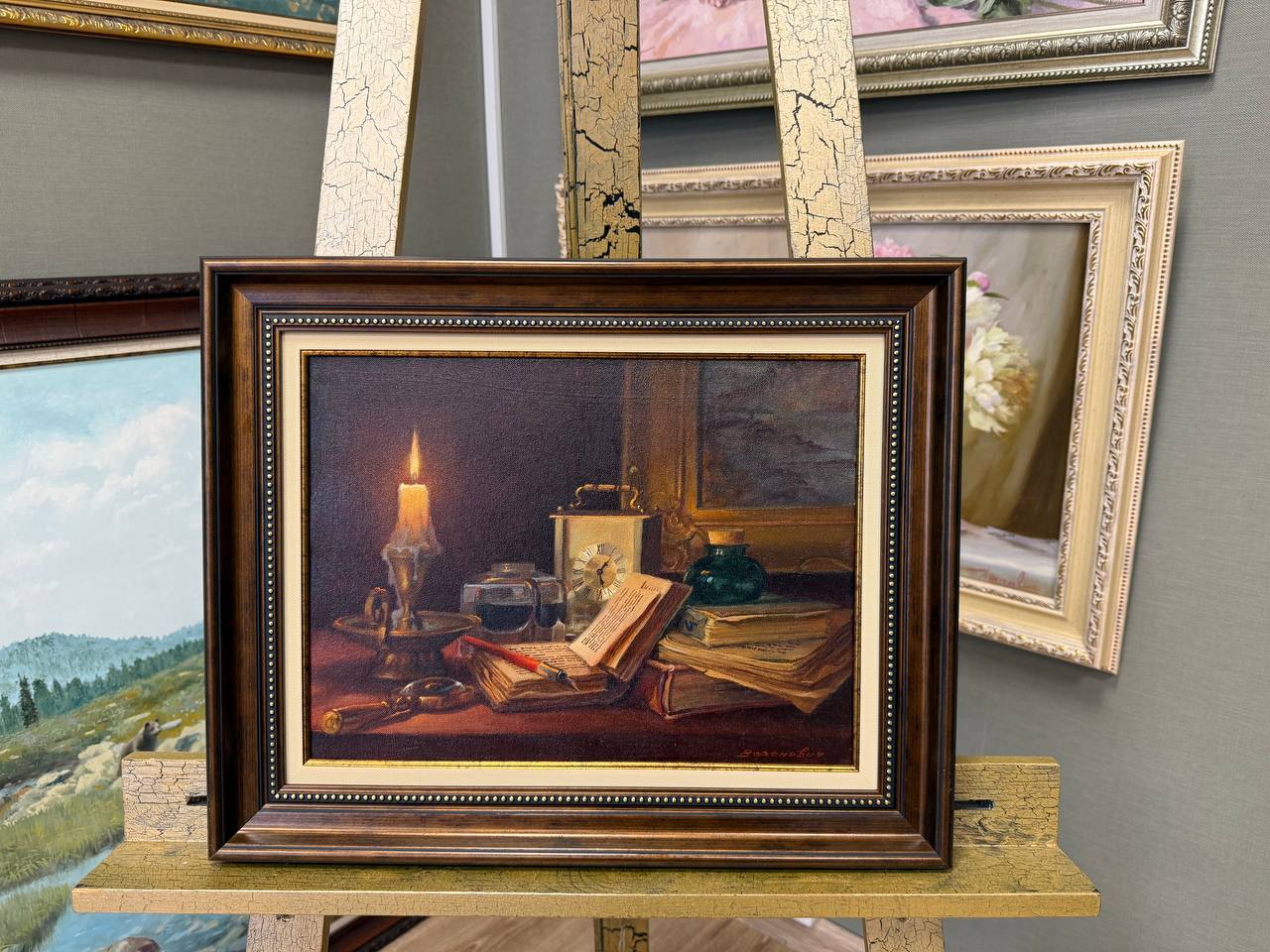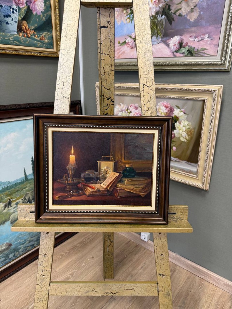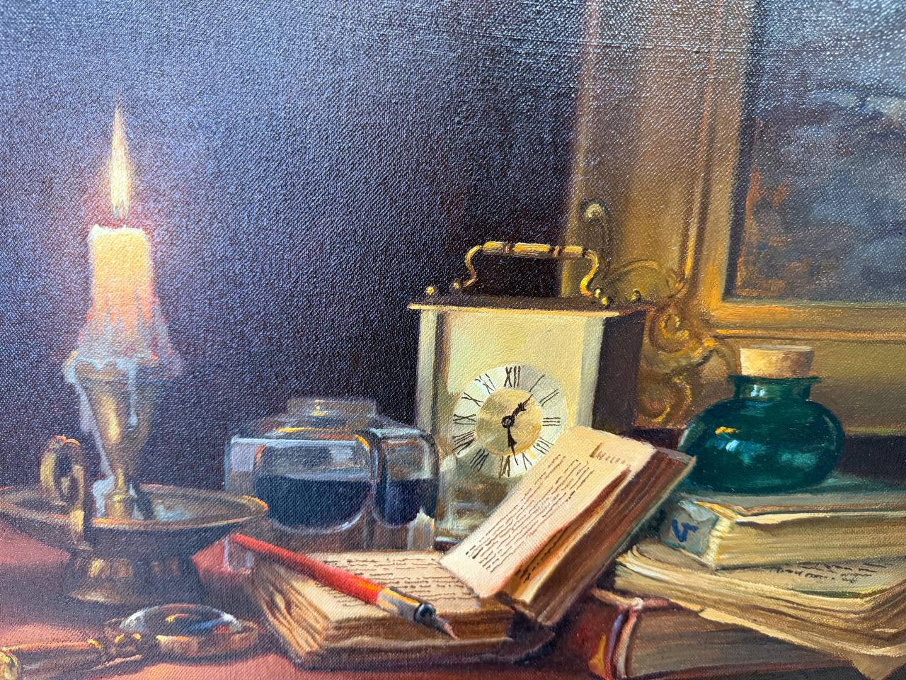 Картина написана маслом на холсте, натюрморт "Стол поэта".