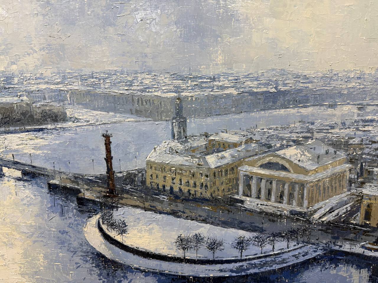 Картина написана маслом на холсте, городской пейзаж "Стрелка. Санкт-Петербург".
