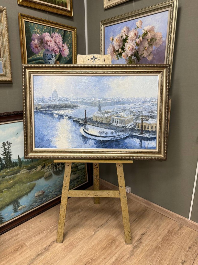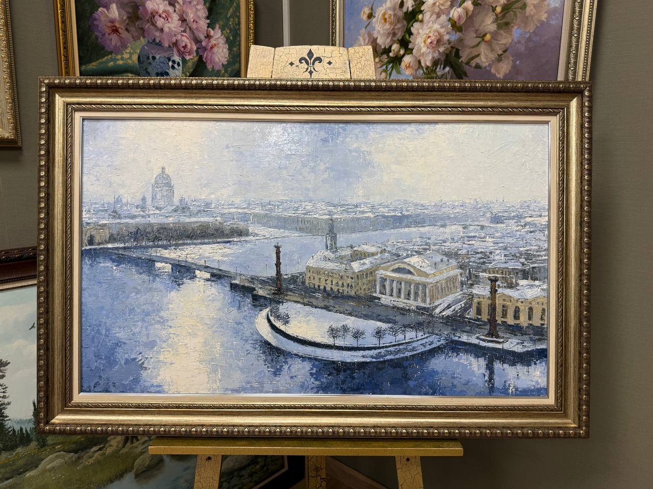 В нашем интернет-магазине картин, вы можете купить картину написанную маслом на холсте, под названием "Стрелка. Санкт-Петербург"