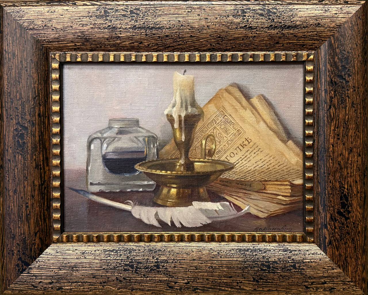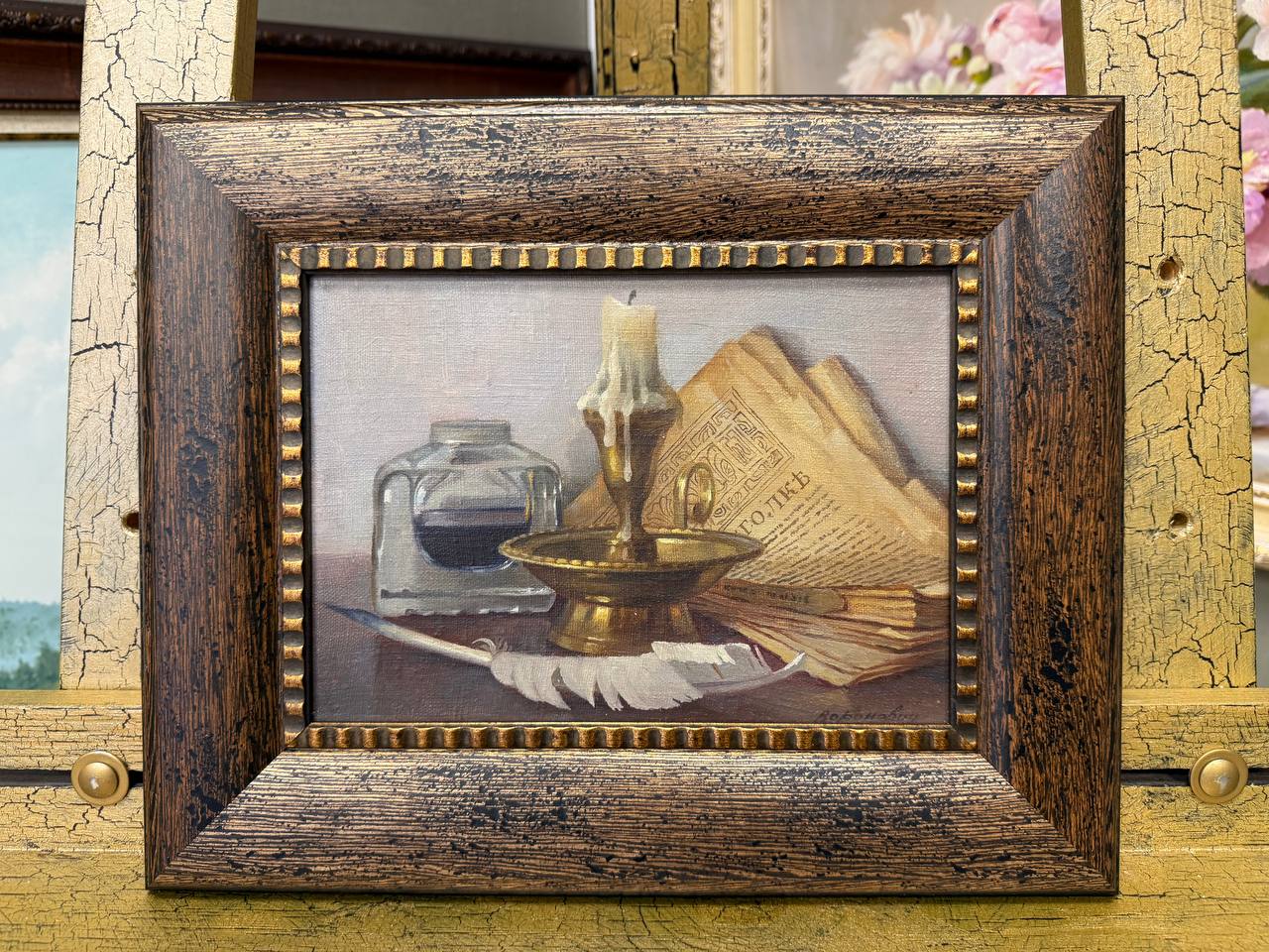 Картина написана маслом на холсте, натюрморт "Свеча горела".