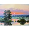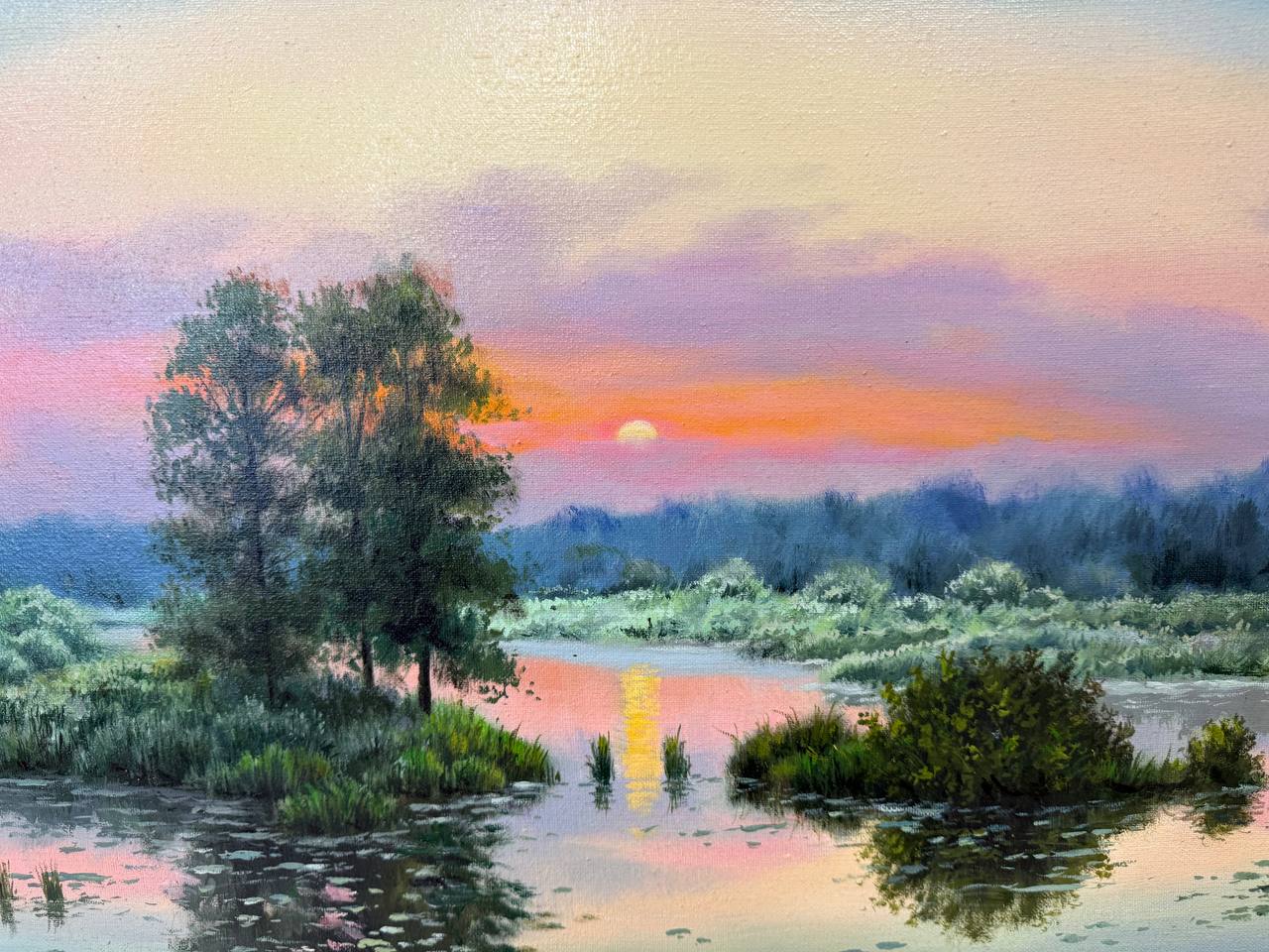Картина написана маслом на холсте, летний пейзаж "Туман на рассвете" 1.