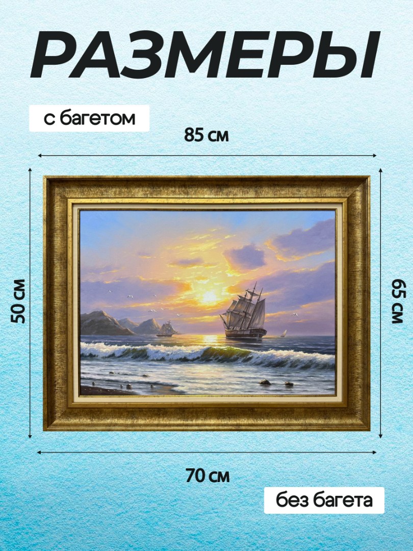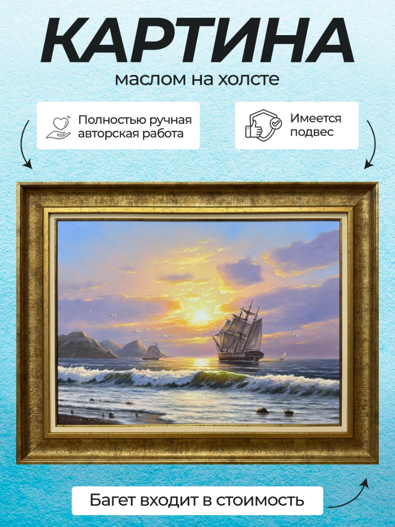 Вся композиция наполнена ощущением свободы и бесконечности. Картину дополняют звуки моря и ветер, шепчущий о далеких краях и морских просторах.