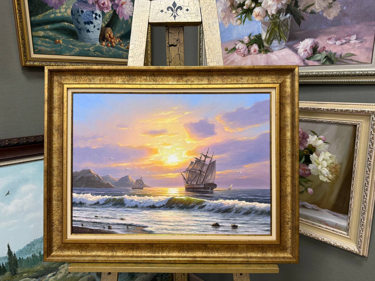 Картина написана маслом на холсте, морской пейзаж "У родных берегов" 1.