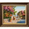 На картине изображена уютная улочка Барселоны, залитая солнечным светом. Дорога выложена старинными камнями, которые хранят в себе тепло и историю города. Повсюду, на окнах и подоконниках, расцветают яркие цветы: цитрусовые, лаванда и другие растения в горшках, создающие атмосферу уюта и радости. Солнечные лучи играют на лепестках, придавая им особую яркость.