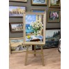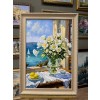 Картина написана маслом на холсте, цветы, летний пейзаж "Утро у моря".