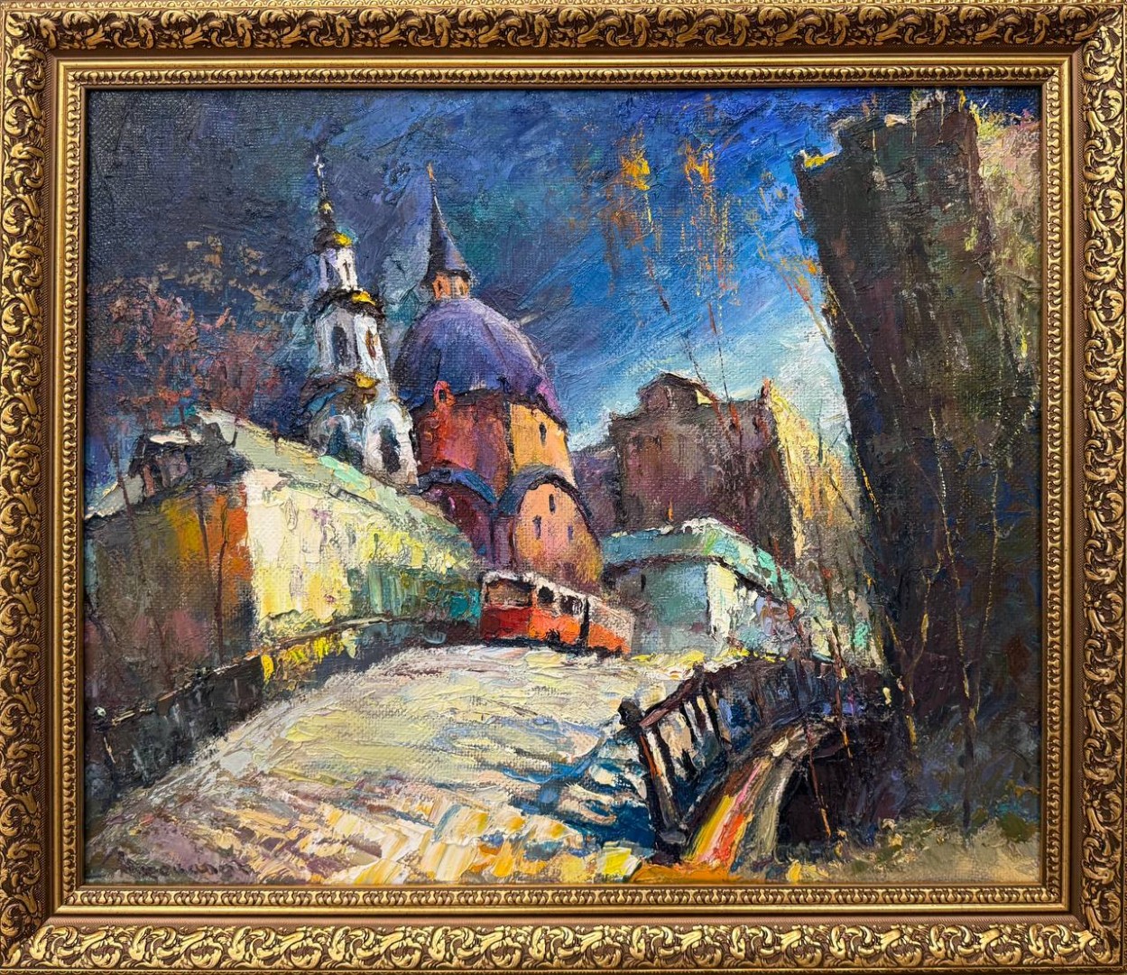 Картина написана маслом на холсте, городской пейзаж "В Капитанской слободе".